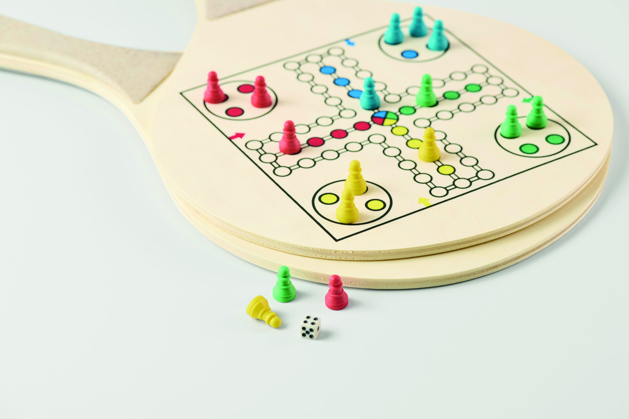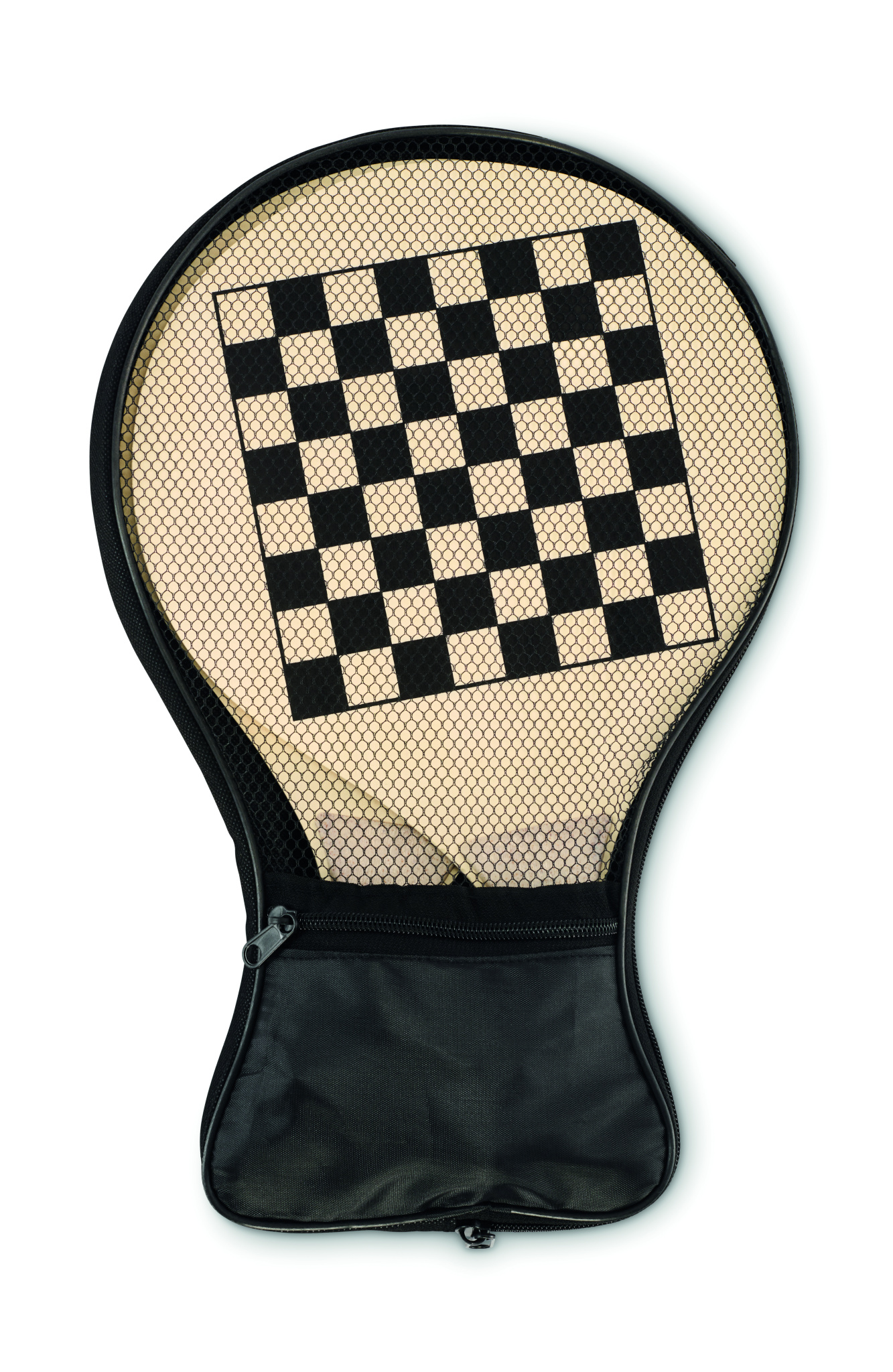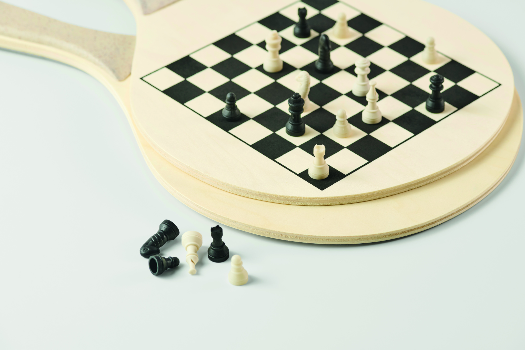 Rantasetti, jossa on kaksi vanerimailaa sekä shakki- ja ludo-pelilaudat. Sisältää yhden TPR-pallon, nopan ja tammipelit. Pakattu vetoketjulliseen RPET-verkkokassiin.