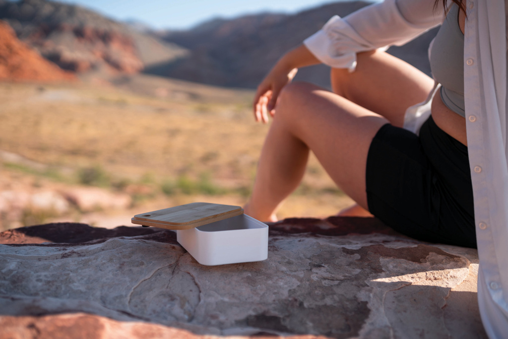 Pakkaa lounaat mukaan helpommin kuin koskaan tällä kierrätetystä PP:stä valmistetulla eväsrasialla. Rasian pohja on valmistettu 100% kierrätetystä RCS-sertifioidusta RPET:stä. RCS sertifiointi varmistaa kierrätettyjen materiaalien täysin sertifioidun toimitusketjun. Tilavuus 0.7 litraa. Sisältää kätevän joustavan nauhan ja RPET sporkin. Kierrätetyn materiaalin kokonaismäärä 44% perustuen tuotteen painoon. Pakattu FSC-sekoituksesta valmistettuun kraft-pakkaukseen. Vain käsinpesu.