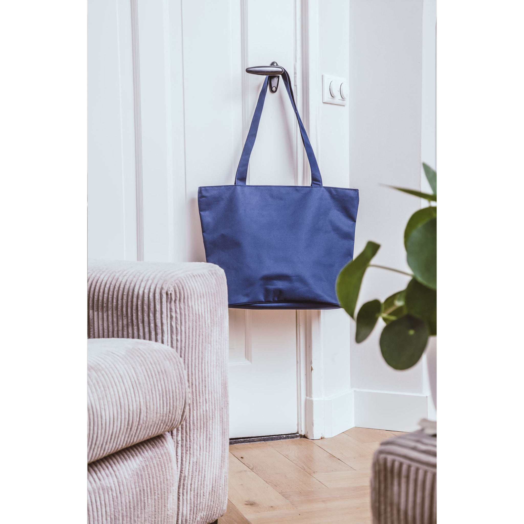 Kaunis, kestävä laukku, joka on valmistettu 600D polyesterista, vahvistettu sisäpuoli, pitkät kahvat, vetoketju ja vetoketjullinen säilytystasku. Leveässä pohjassa on kaunis ja sileä viimeistely pyöreällä putkella. Monikäyttöinen ostoskassi, ostoskassi ja rantakassi.