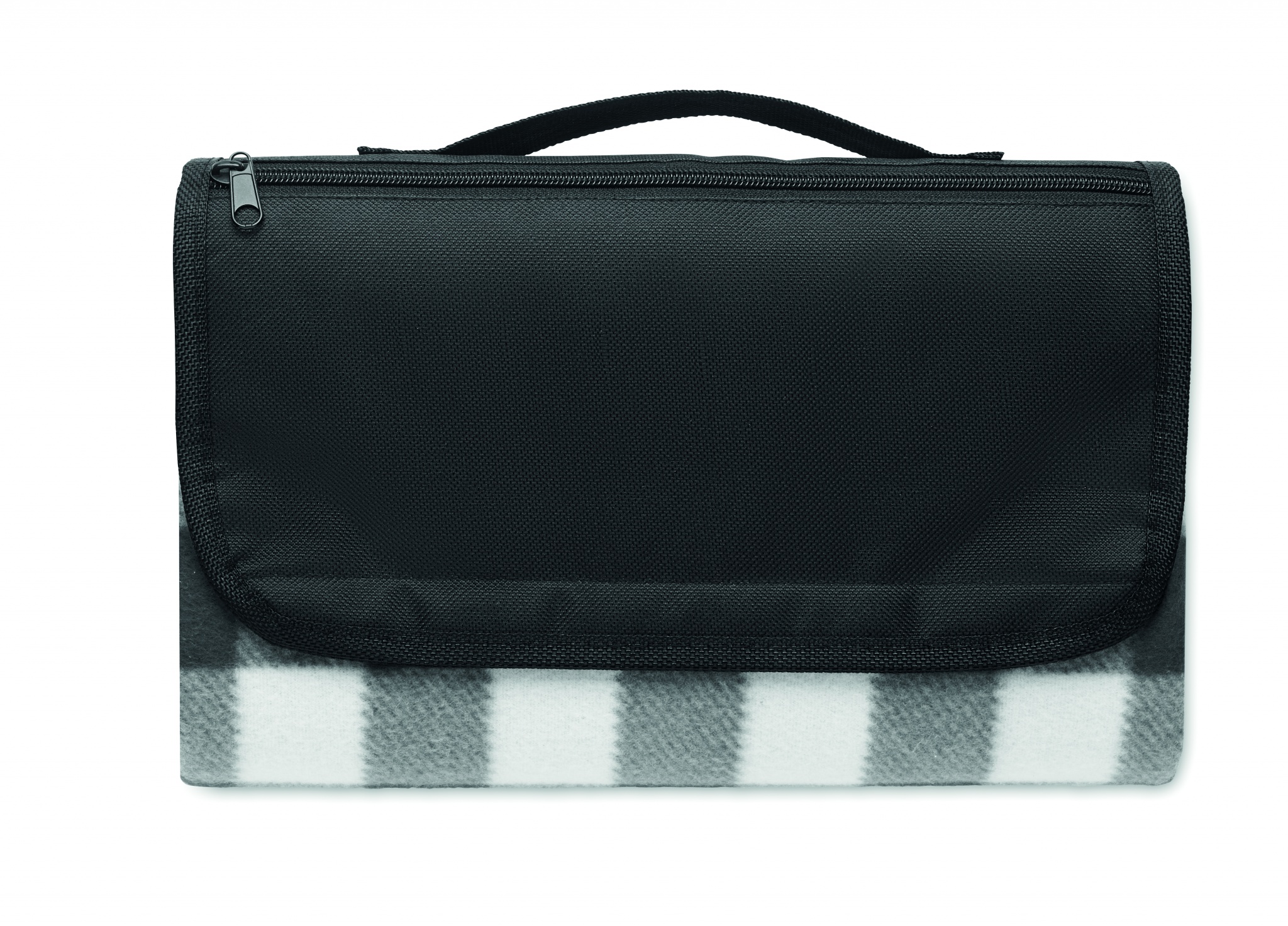Taitettava RPET 150 gr/m² polarfleece piknik-peitto, jonka kääntöpuoli on vedenkestäväksi pinnoitettua PEVA. Peitossa vetoketjullinen etutasku ja lyhyt kantohihna.