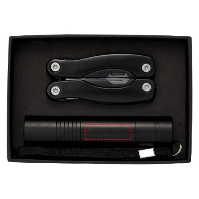 Monitoimiveitsi jossa 11 toimintoa ja LED taskulamppu mustassa lahjapakkauksessa jossa EVA sisus. Sisältää paristot.
