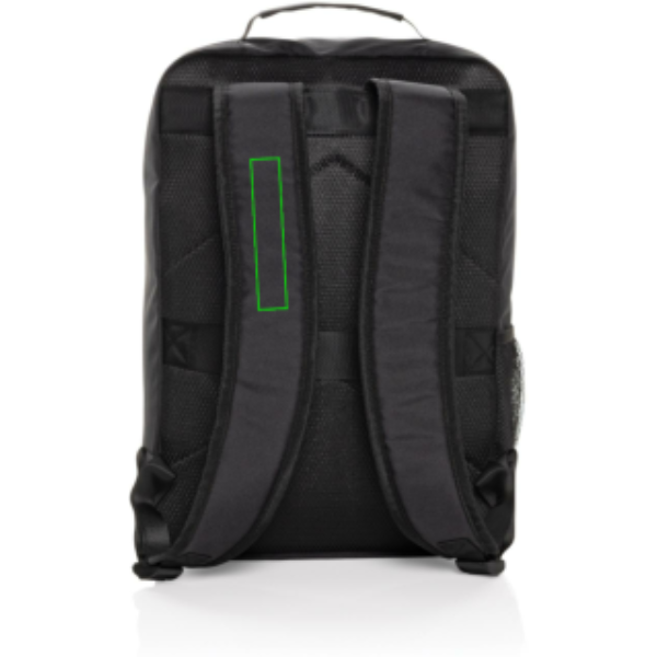 Swiss Peak Aware™ RPET Essential 15,6 tuuman kannettava tietokone -reppu on suunniteltu vastaamaan jokapäiväisiä liiketoimintatarpeitasi. Tässä 100 % rPET:stä valmistetussa tyylikkäässä ja kestävässä repussa on vetoketjullinen päälokero, jossa on oma kannettava tietokoneosio, johon mahtuu nykyaikaiset 15,6-tuumaiset kannettavat tietokoneet, sekä sisäpuolella oleva verkkovetoketjutasku ja hoitotarra. Säädettävät olkahihnat, joissa on soljet, takaavat mukavan istuvuuden, kun taas vetoketjullinen etutasku ja juomapidikkeellinen sivutasku tarjoavat lisää säilytystilaa. Laukussa on myös kätevä matkatavarahihna selässä ja verkkokahva ylhäällä helppoa käsittelyä varten. Swiss Peakin tummansävyinen logo ja ensiluokkaiset Swiss Peak -vetoketjut viimeistelevät sen ammattimaisen ulkonäön.Valmistettu kierrätetystä polyesteristä, johon on upotettu AWARE™-merkkiaine. Jokaisen AWARE™-merkinnällä varustetun tuotteen tuotosta 2 % lahjoitetaan Water.orgille. PVC-vapaa.