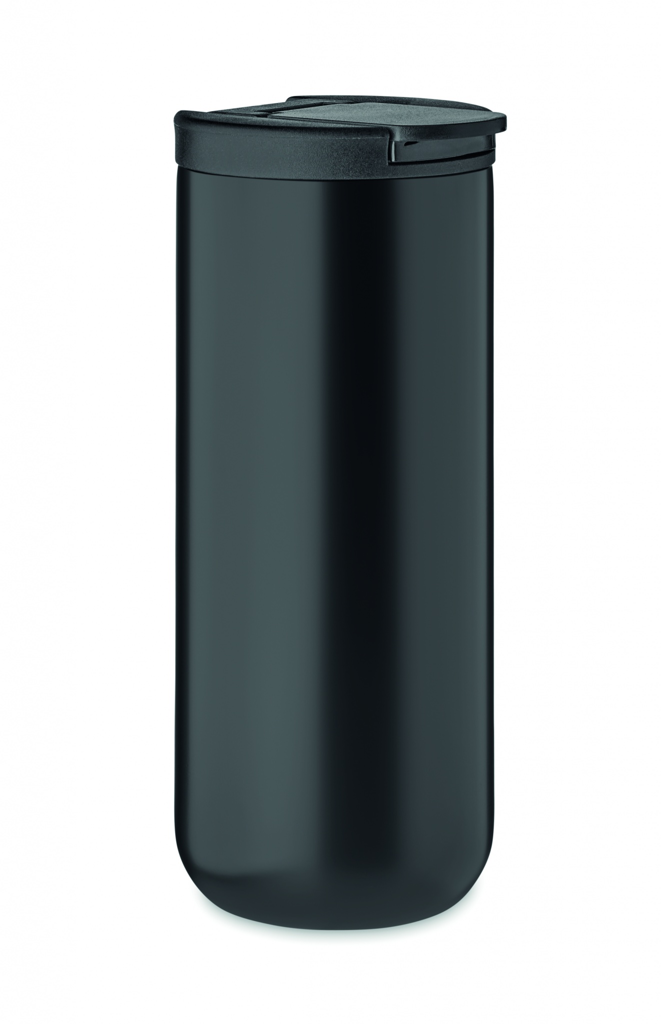 Kaksiseinäinen ruostumattomasta teräksestä valmistettu termosmuki, jossa juomakansi. Tilavuus 330 ml. Vuotamaton.