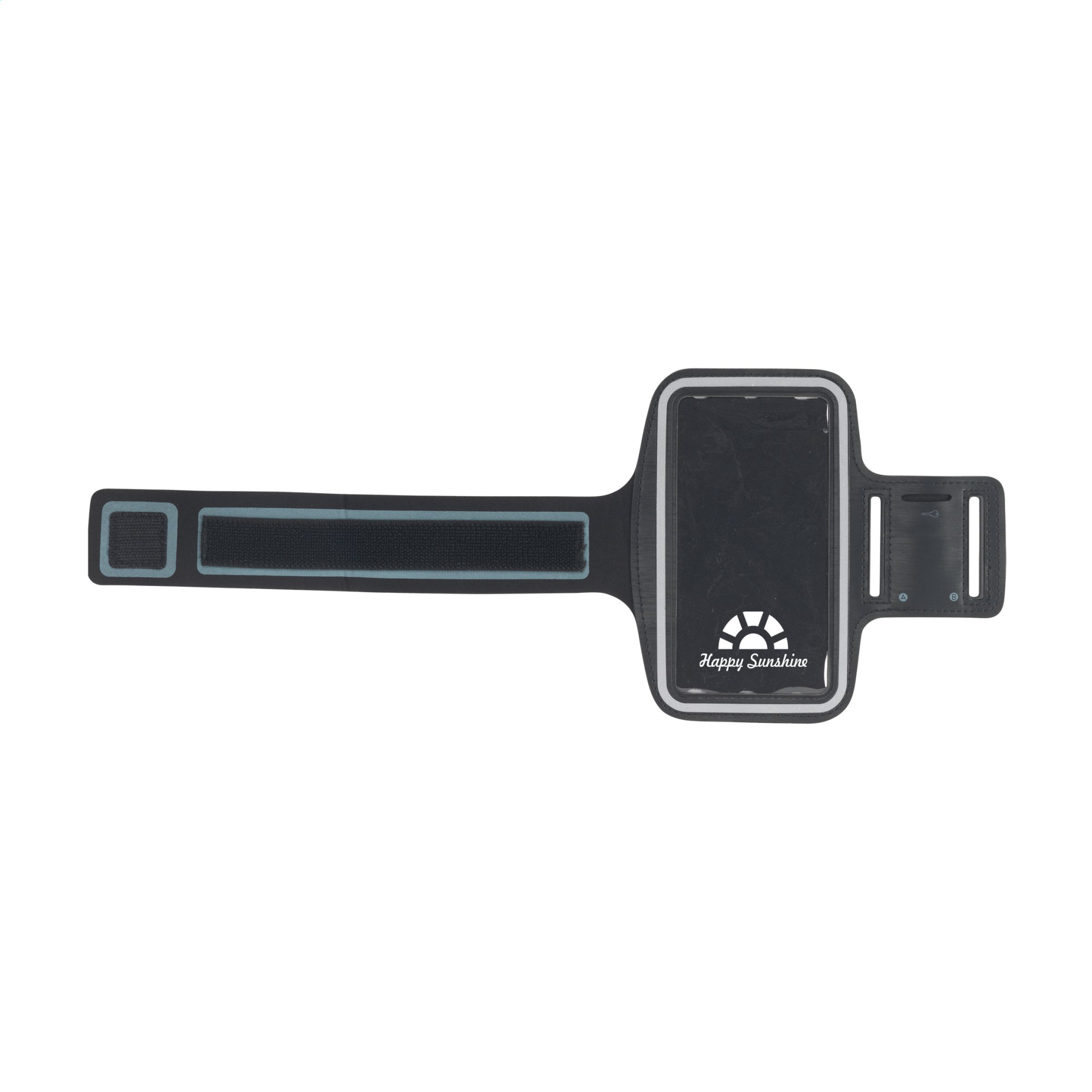 Säädettävä urheiluranneke joustavasta, joustavasta ja kulutusta kestävästä materiaalista. Tarrakiinnitys, erityinen avainpussi ja läpinäkyvä puhelimen kansi fluoresoivalla kehyksellä, jotta olet paremmin näkyvissä pimeässä. Himmentää. runko 7,5 x 14,5 cm.
