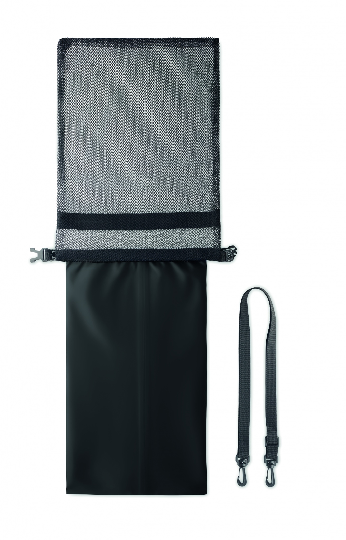 210D RPET vedenpitävä kassi, verkkokassin sisällä. Säilytä arvotavarasi tämän kassin sisällä ollessasi veneilemässä taikka rannalla, tuote ei kellu. Molemmat kassit on valmistettu kierrätetystä RPET muovista, tilavuus 6 litraa.
