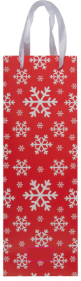 Paperinen lahjapussi, jossa kaunis joulumuotoilu ja kaksi kantokahvaa, viinipullolle. Kiinnitämme logosi pussiin CMYK-etiketillä.