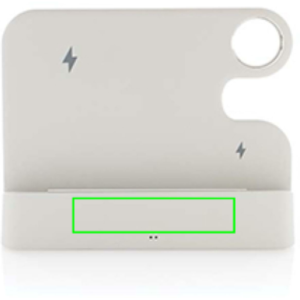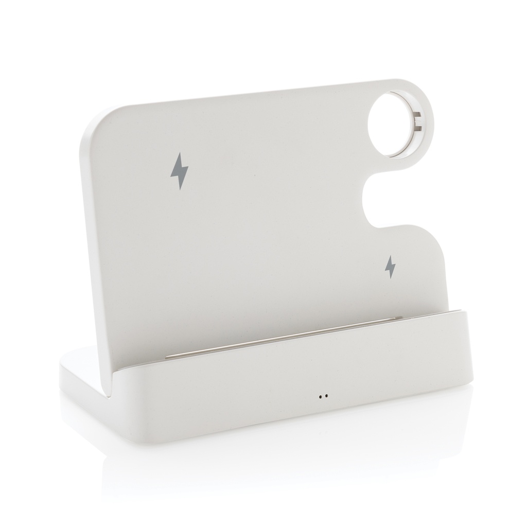 Sulankstomas dizaino įkrovimo stovas su 15 W belaidžiu įkrovikliu, pagamintu iš perdirbto ABS. Su antruoju 5 W belaidžiu įkrovikliu mažesniems objektams, pvz., ausinėms, įkrauti. Su iWatch lizdu, kad tilptų oficialus iWatch įkrovimo laidas. Galinėje pusėje yra 5V/1A USB A ir USB C išvesties prievadas daiktams įkrauti laidu. Su silikoniniais antgaliais apačioje, kad neslystų, ir silikonine amortizacija prie stovo, kad telefonas būtų puikios būklės. Bendras perdirbtas turinys: 80% nuo bendro prekės svorio. RCS sertifikatas užtikrina visiškai sertifikuotą perdirbtų medžiagų tiekimo grandinę. Supakuota į FSC® pakuotę. Be PVC. Įskaitant RCS perdirbtą TPE 120 cm USB A į USB C įkrovimo laidą. Supakuota į FSC® pakuotę. Be PVC
