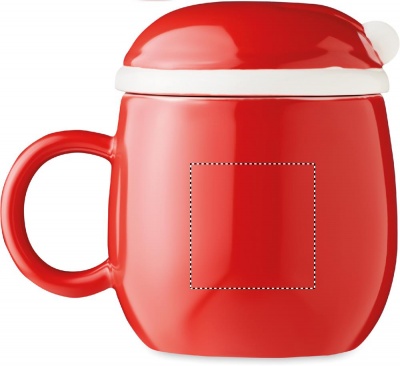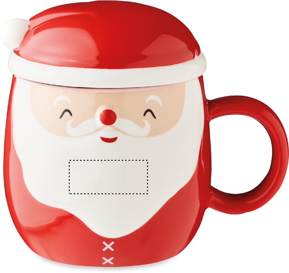 Keraminis puodelis su Kalėdų Senelio dekoracija ir dangteliu. Talpa: 370 ml.