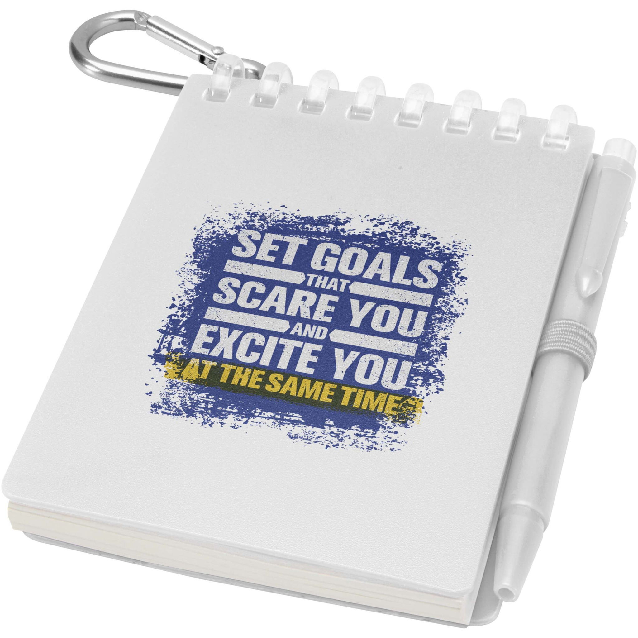 „Lig Mini“ užrašų knygelės ir rašiklio rinkinys yra kompaktiškas ir praktiškas pagalbininkas užsirašinėjant užrašus kelyje. Spiraliniu įrišimu užrašų knygelė turi minkštą perdirbto plastiko viršelį ir 70 tuščių lapų iš 120 g/m² vandeniui atsparaus akmens popieriaus, todėl idealiai tinka naudoti lauke. Suapvalinti kampai ir integruota rašiklio kilpa, ji atitinka mini dydžio tendenciją, tačiau išlieka funkcionali. Derantis rutulinis rašiklis pagamintas iš perdirbto ABS plastiko, rašo juodu rašalu ir siūlo 250 metrų rašymo ilgį. Spalviškai derantis metalinis žiedas leidžia rinkinį lengvai pritvirtinti prie kuprinės, rankinės ar raktų pakabuko, todėl jis puikiai tinka patvariam ir nešiojamam užrašų darymui. Užrašų knygelės dydis: 11 × 7,5 cm.
