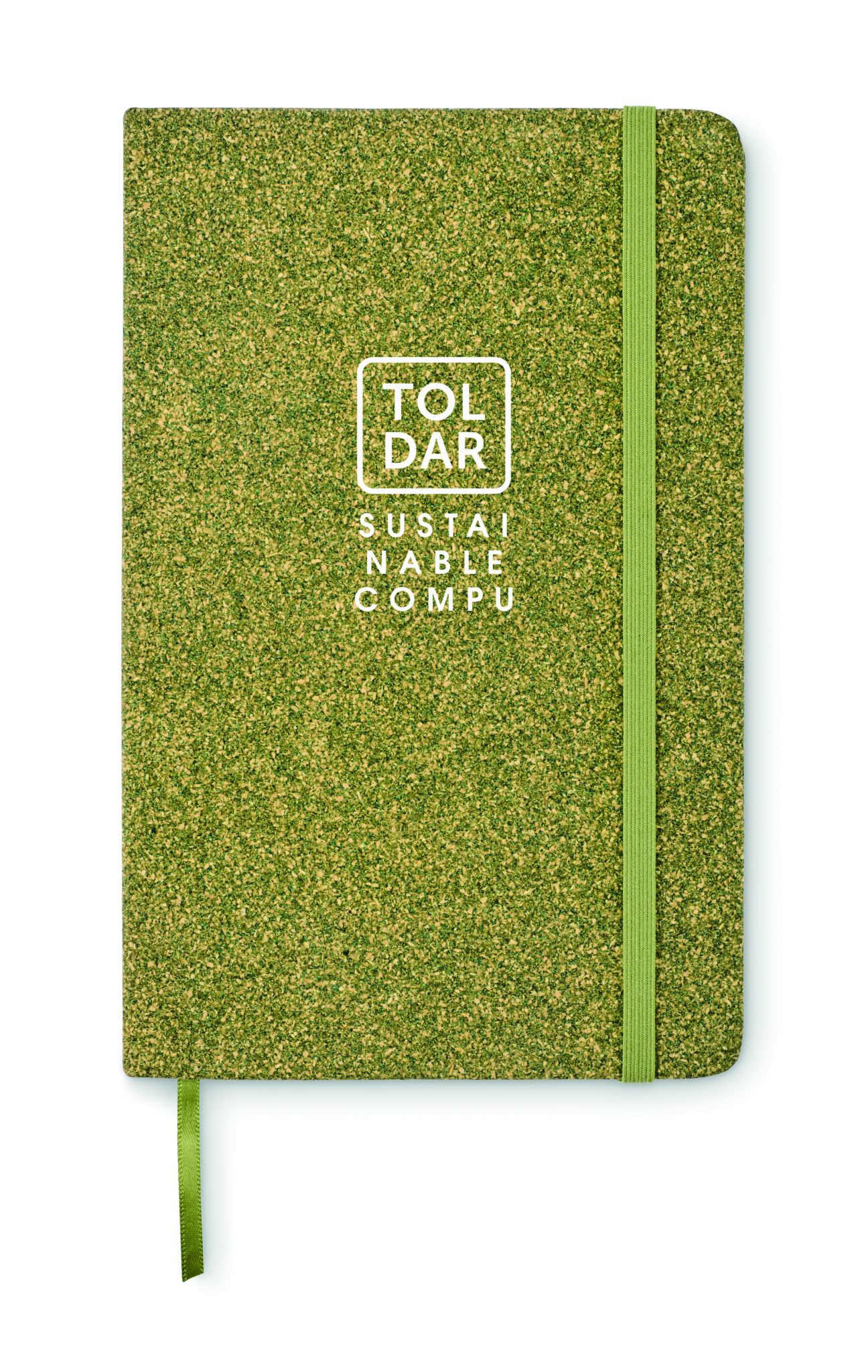 A5 notebook with hard cover made of 20% tea grounds, 30% cork and 50% polycotton cloth. Casebound.160 lined recycled paper pages (80 sheets/70gsm). Matching elastic closure strap and ribbon page-marker. FSC®-certified | FSC MIX CREDIT, N7.1, FSC-C213206