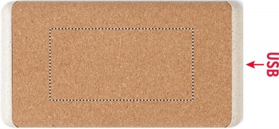 Беспроводное зарядное устройство мощностью 10 Вт и аккумулятор емкостью 10 000 мАч в пробковом корпусе и деталями из эко пластика на основе переработанной пшеницы. Поддерживает технологию быстрой зарядки (20 Вт). Вход/выход: Type-C.