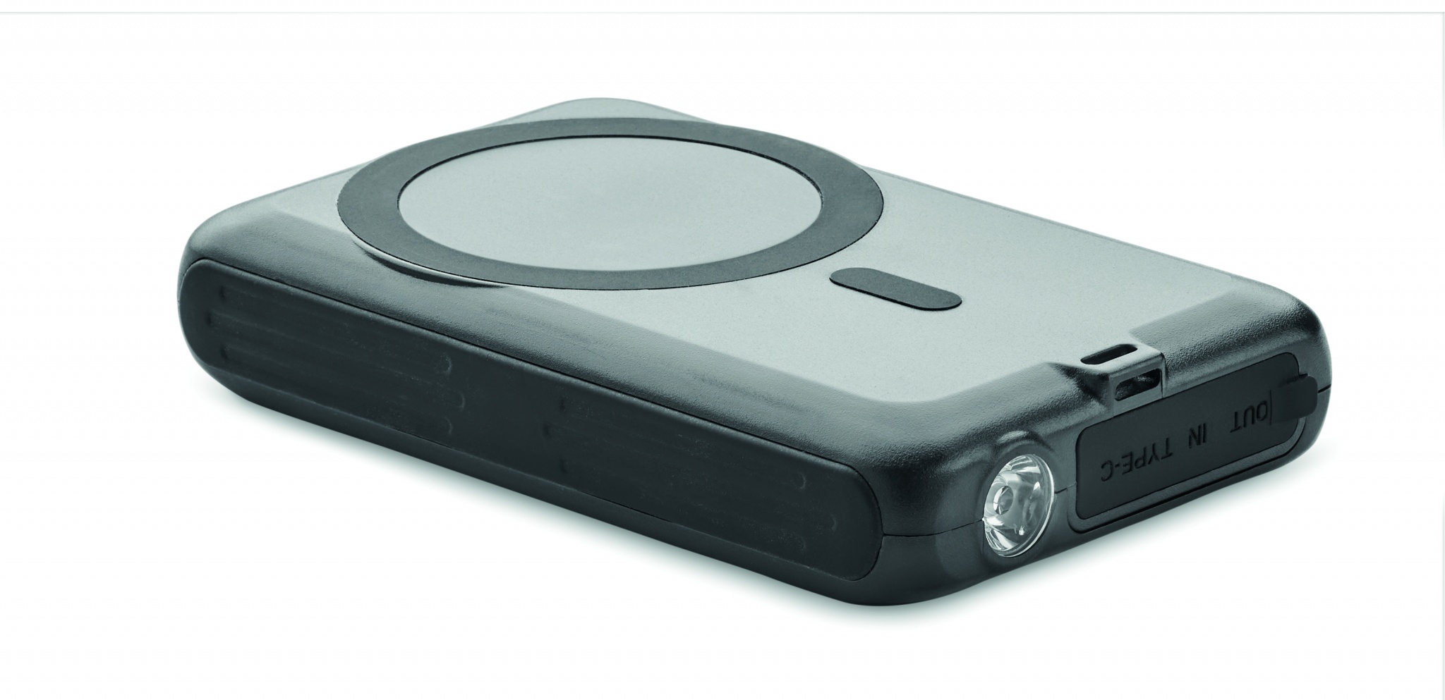 Магнитное беспроводное зарядное устройство (5 Вт) и аккумулятор на солнечной батарее 5000 мАч из пластика. Выход: DC 5V/2A. Совместим с iPhone® 12 и новее. Включает дополнительное магнитное металлическое кольцо для беспроводной зарядки немагнитных устройств.