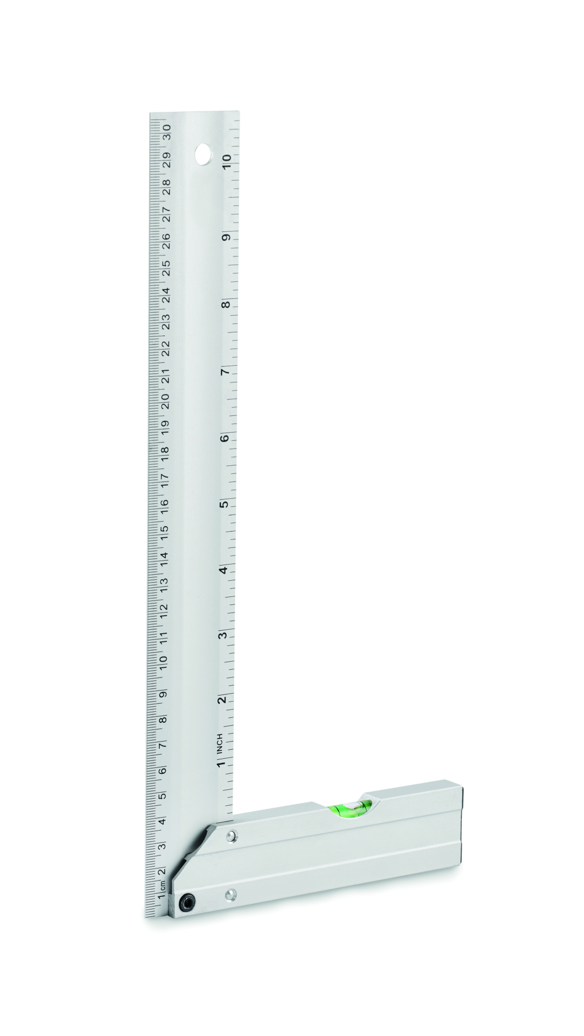 Aluminium set square with spirit level. Ruler 30 cm.