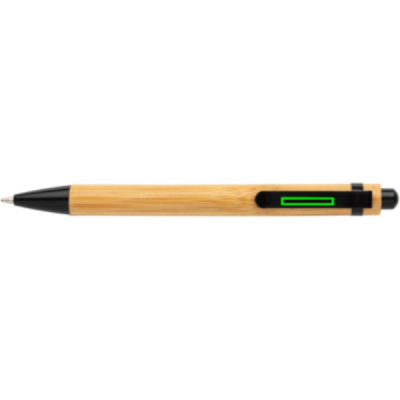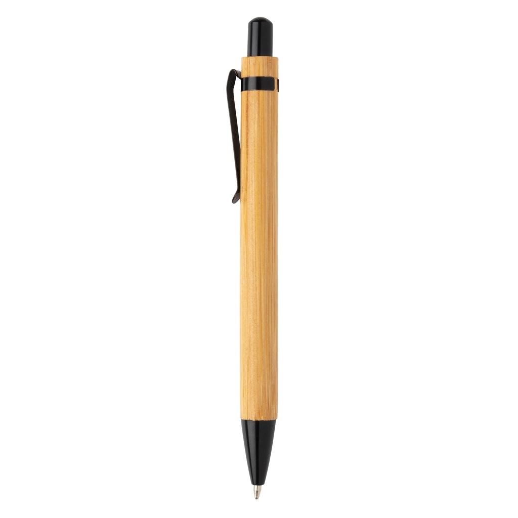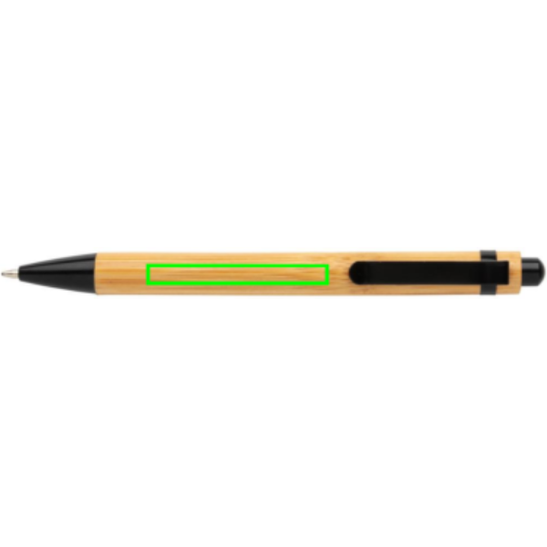 Шариковая ручка из бамбука с металлическим кольцом и зажимом.