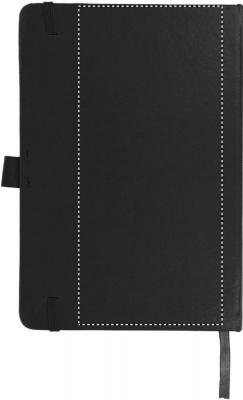 Блокнот A5 с обложкой из картона, 72 линованных листа, с лентой- закладкой, перетянут резинкой. Включает металлическую шариковую ручку с синими чернилами.