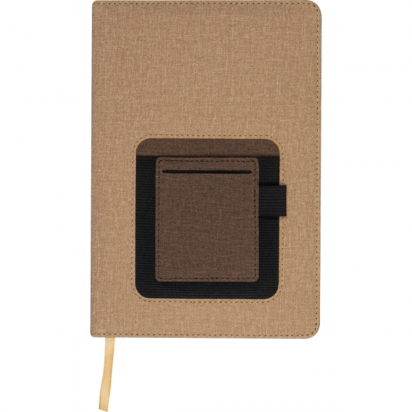 Элегантный блокнот формата DIN A5 на 160 страниц в точку, закладки и петля для шариковой ручки, вставка и отделение для смартфона (ширина около 9 см) на внешней стороне обложки. Так что все есть и всегда под рукой. Мы напечатаем ваш логотип на внешней стороне обложки.