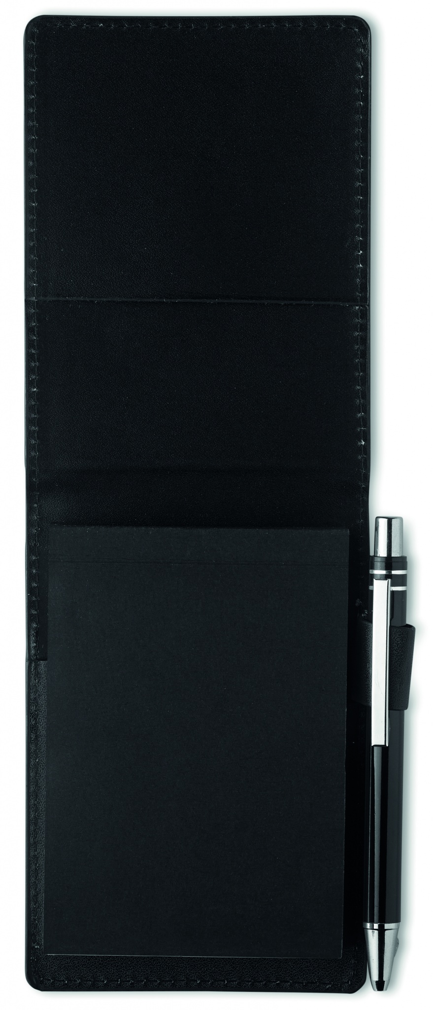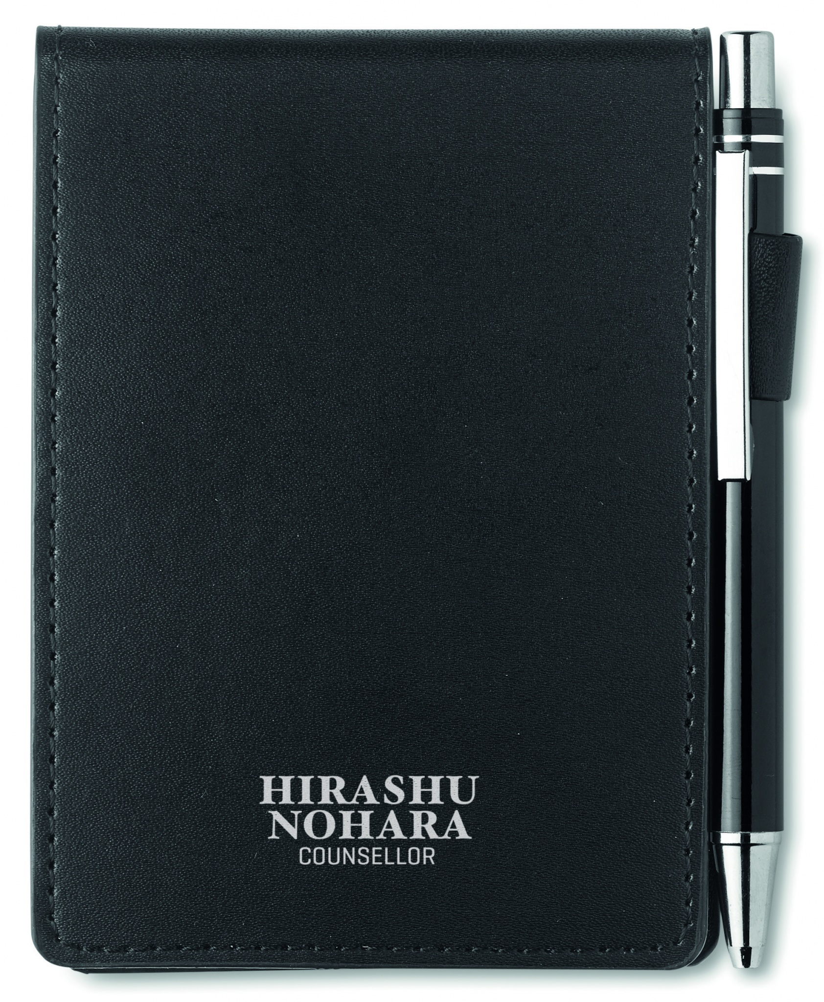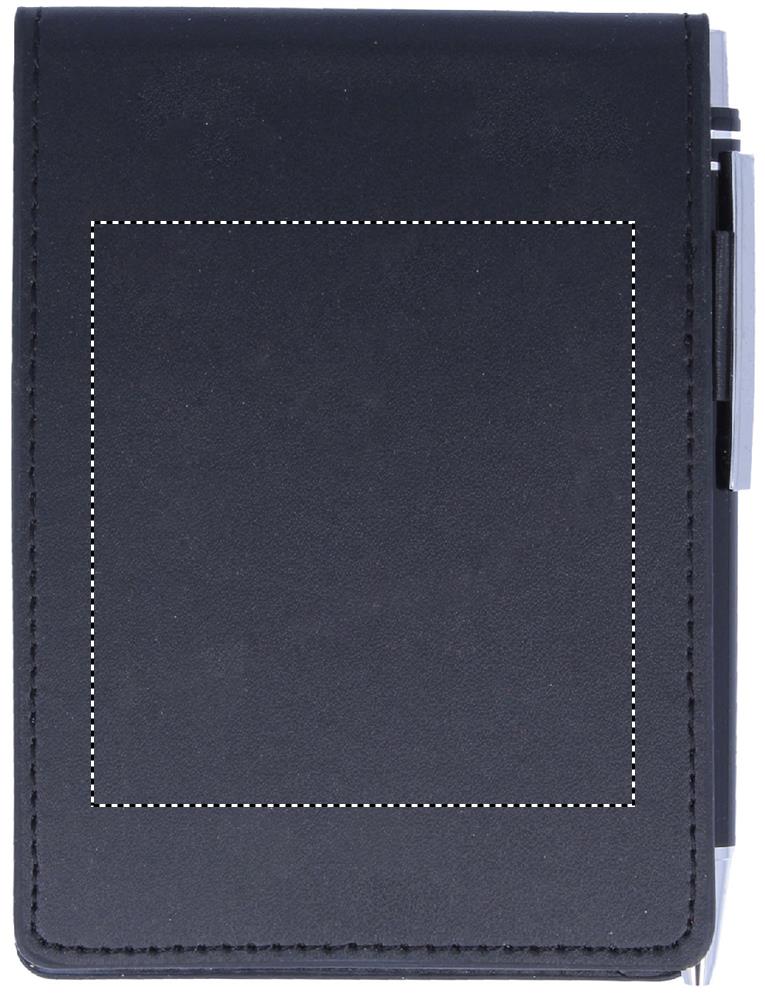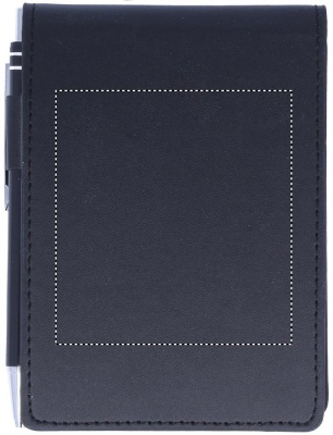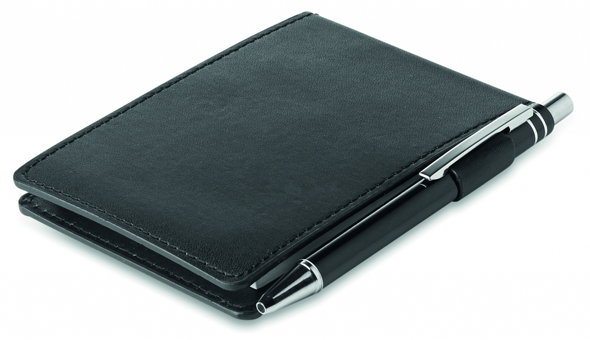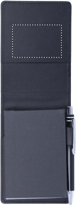 Блокнот формата А7 с 60 отрывными листами в футляре из кожзаменителя с ручкой.