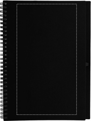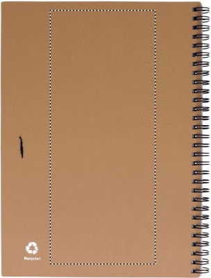Блокнот с картонной обложкой. Включает 70 страниц вторично переработанной бумаги и синюю шариковую ручку из биопластика.