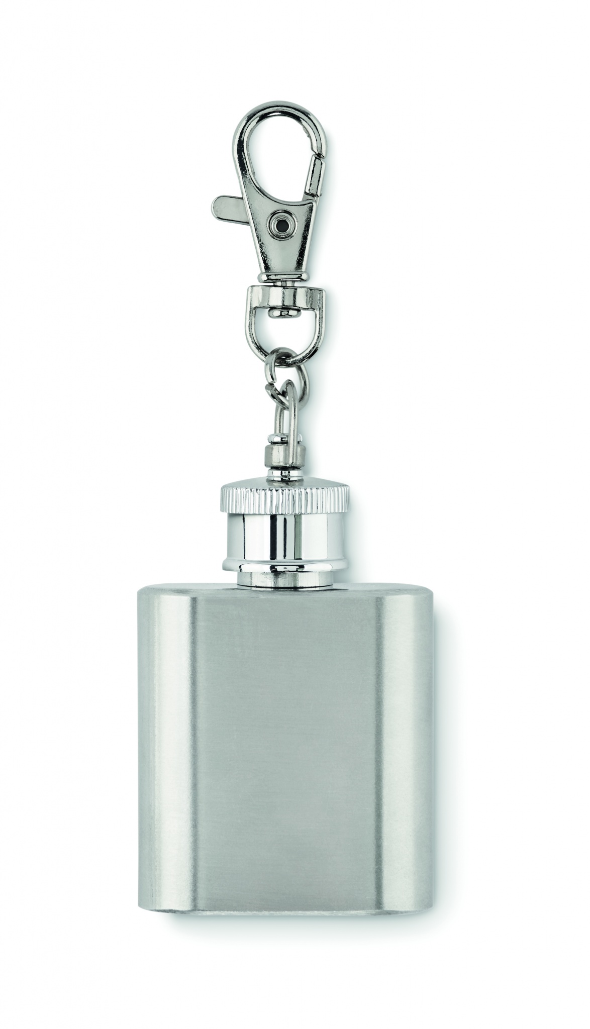 Брелок с карабином в форме фляги из нержавеющей стали. Емкость: 28 мл.