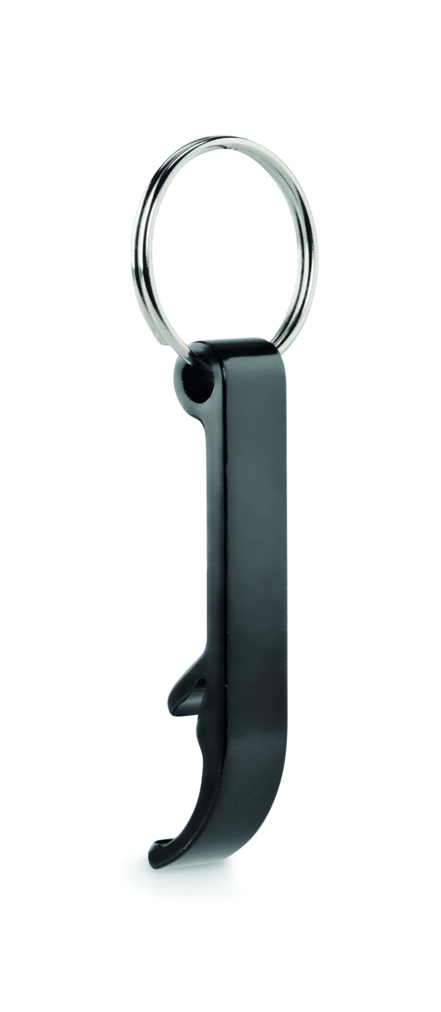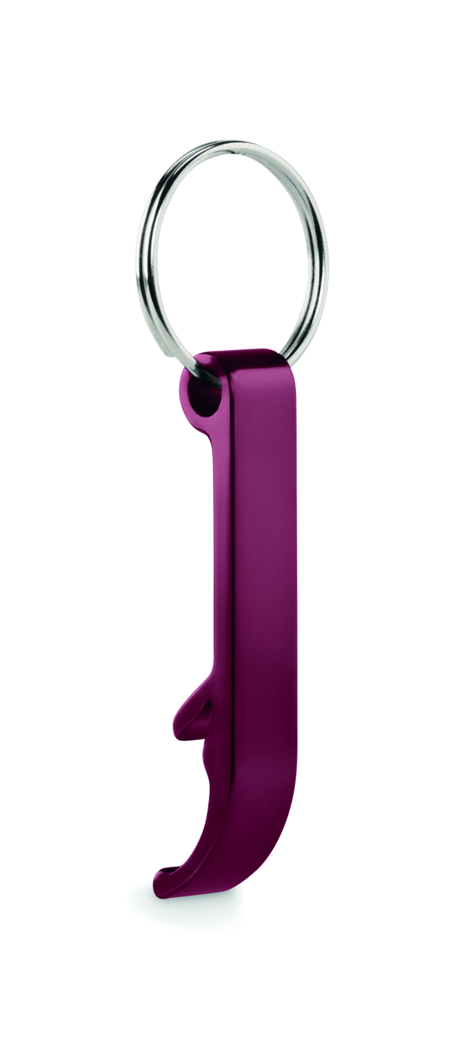 Открывалка для бутылок и брелок для ключей из переработанного алюминия с блестящей отделкой.