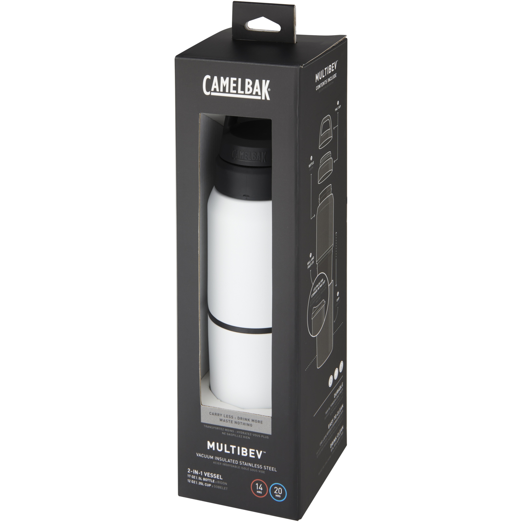 Лучший многофункциональный напиток для устойчивости и универсальности на ходу. MultiBev — это емкость 2 в 1, которая служит как спортивная бутылка и съемная дорожная чашка. Используйте для кофе по утрам, воды в течение дня и пива на природе с друзьями вечером. Пейте. Делитесь. Промойте и повторите. Конструкция из нержавеющей стали с двойными стенками и вакуумной изоляцией сохраняет напитки горячими или холодными в течение нескольких часов. Порошковое покрытие и нескользящее силиконовое основание создают очень прочный внешний вид. Герметичная крышка Pak™ аккуратно скрывает скрученную и складную крышку от глаз, пока она не будет соединена со съемной чашкой или для хранения небольших предметов первой необходимости, таких как чайный пакетик или закуски. Легко чистить. Не содержит BPA, BPS и BPF.