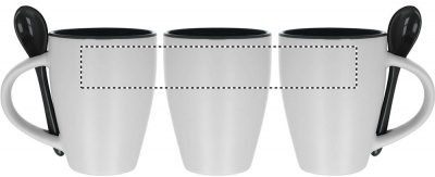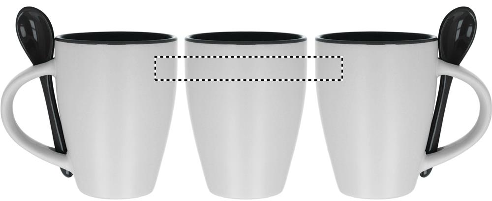 Кофейная двухцветная чашка с цветной ложкой. Объем чашки 250 мл. Тампопечать: нельзя мыть в посудомоечной машине. Деколь: можно мыть в посудомоечной машине.