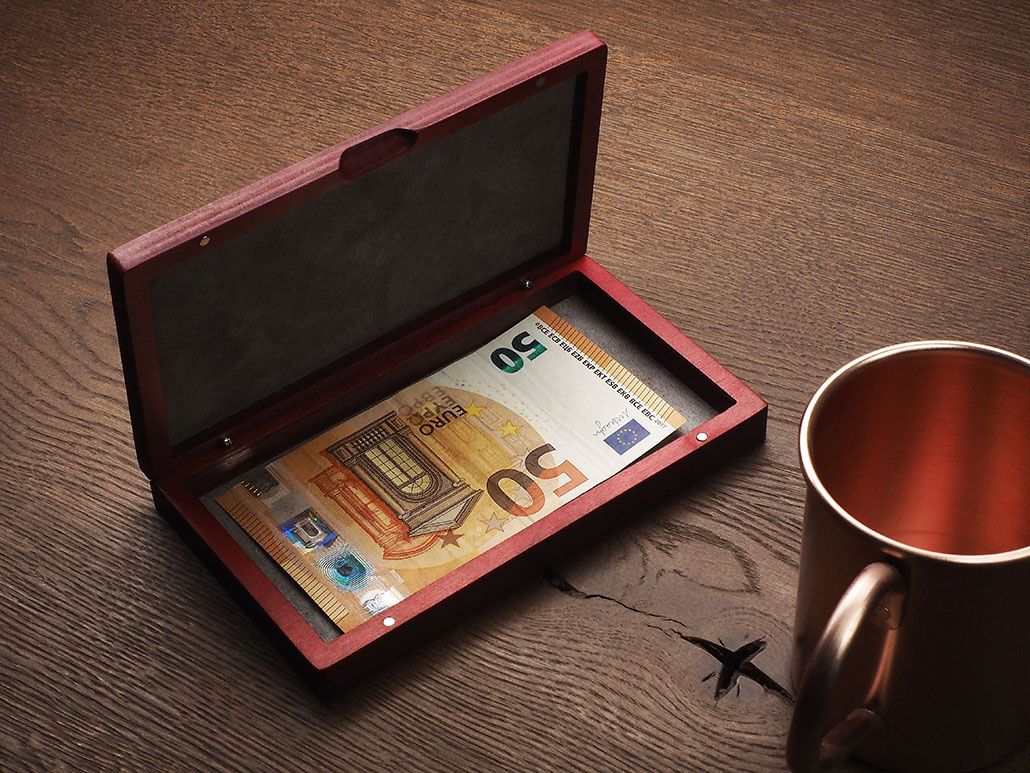 Лого трейд бизнес-подарки фото: Деревянный ящик для купюр 1816121