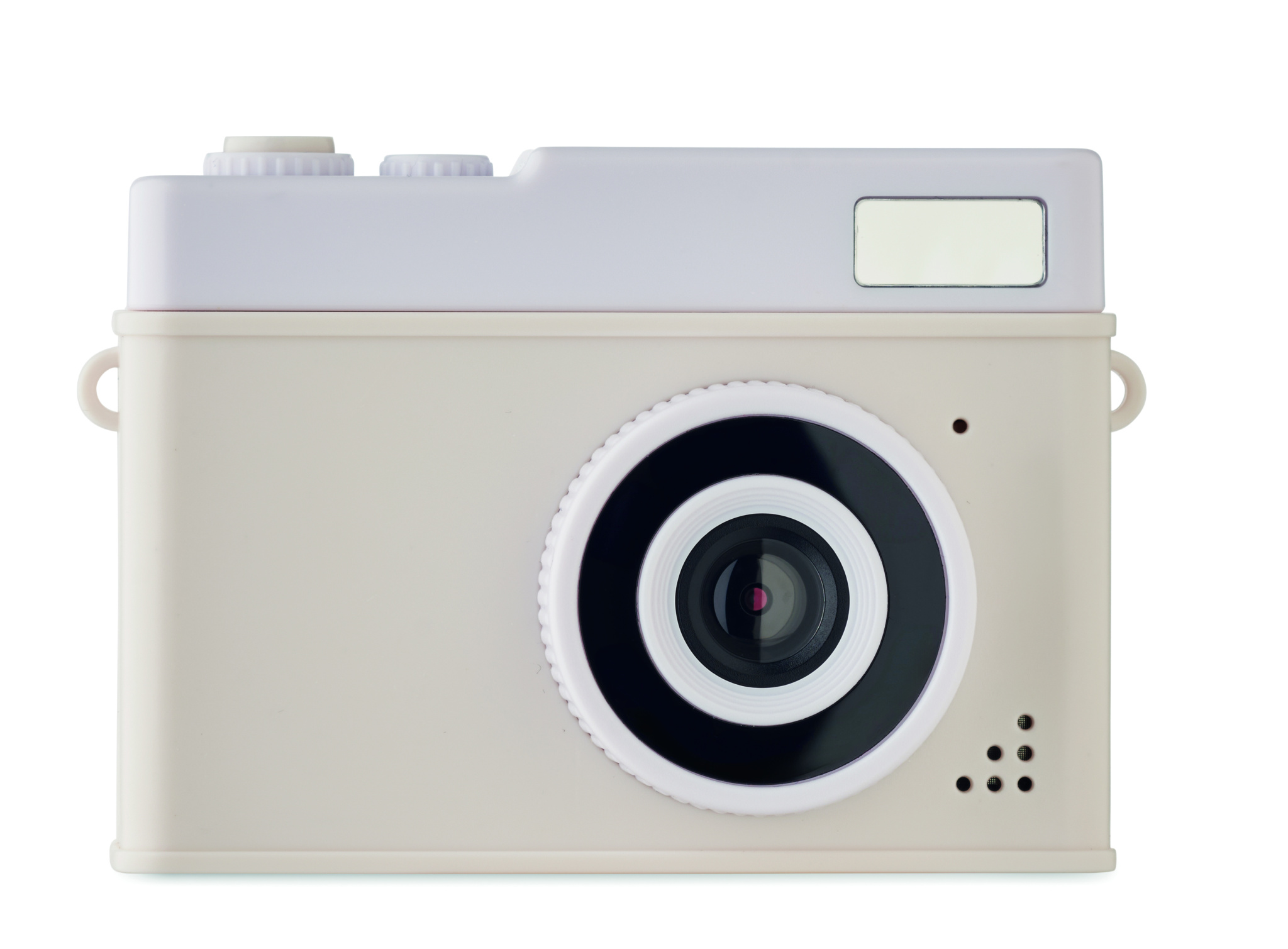 Compact digital camera with LCD monitor. Single Lens with F2.4 lens, 2.0'' LCD, photo resolution up to 12MP and FHD video. Includes USB-C cable and built-in 300mAh battery. SD card not included