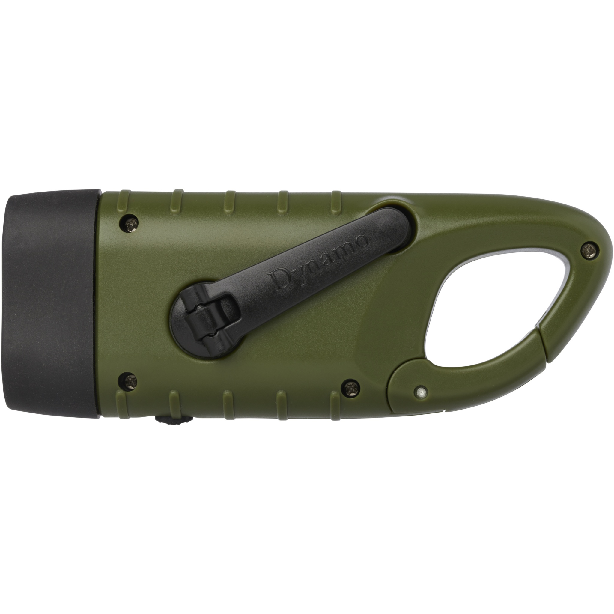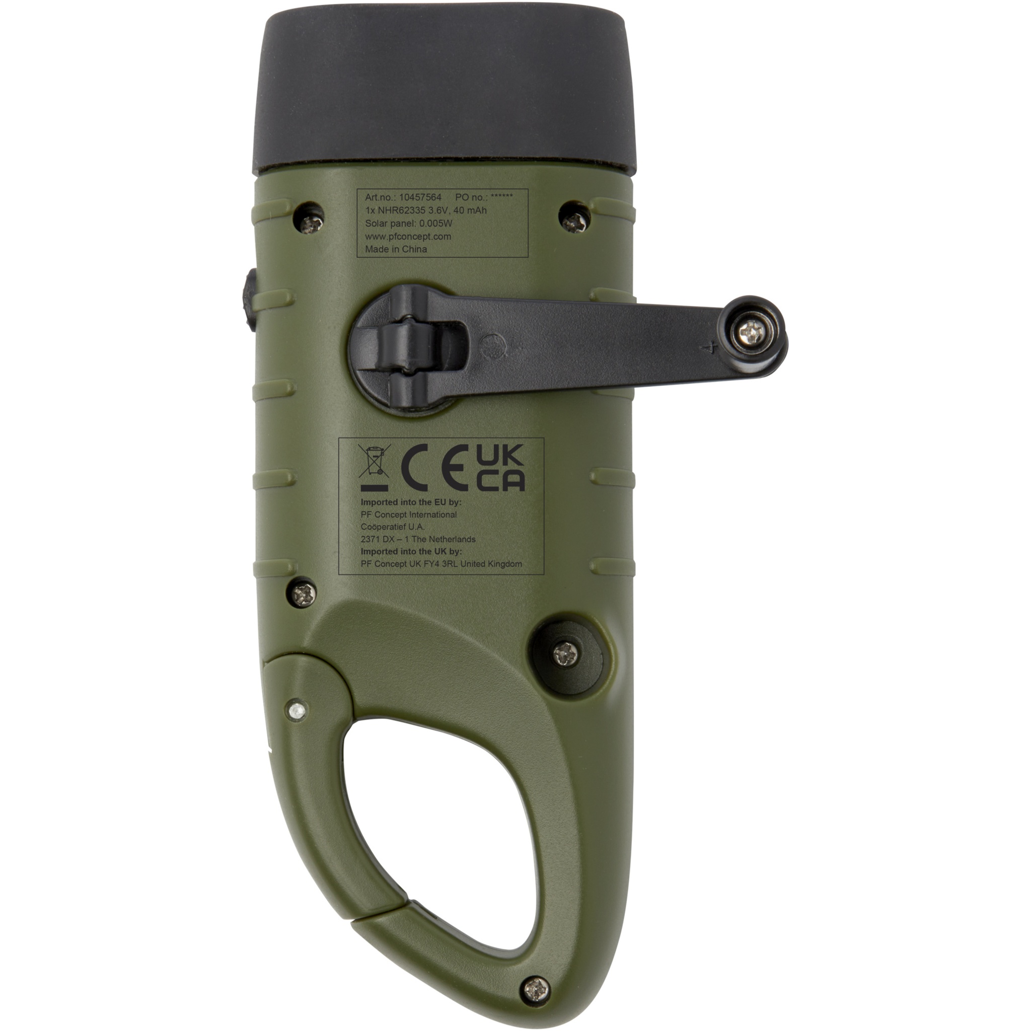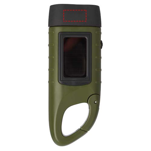 Динамо-фонарик Helios из переработанной пластмассы с солнечной батареей и карабином, Армейский зеленый