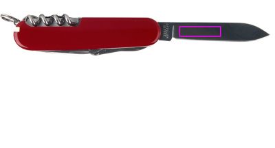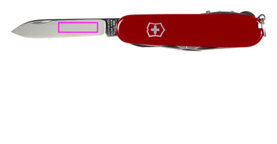 Характеристики: 1. Большое лезвие 2. Маленькое лезвие 3. Штопор 4. Консервный нож с: 5. - Малой отверткой 6. Открывалка для бутылок с: 7. - Большой отверткой 8. - Инструментом для зачистки проводов 9. Развертка/пробойник 10. Ушко для шитья 11. Кольцо для ключей 12. Пинцет 13. Зубочистка 14. Ножницы 15. Универсальный крючок