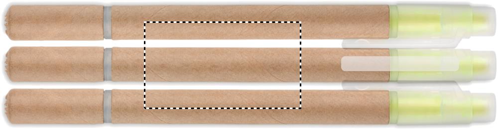 Ручка с маркером 2 в 1. Корпус картонный. Синие чернила, маркер желтый.