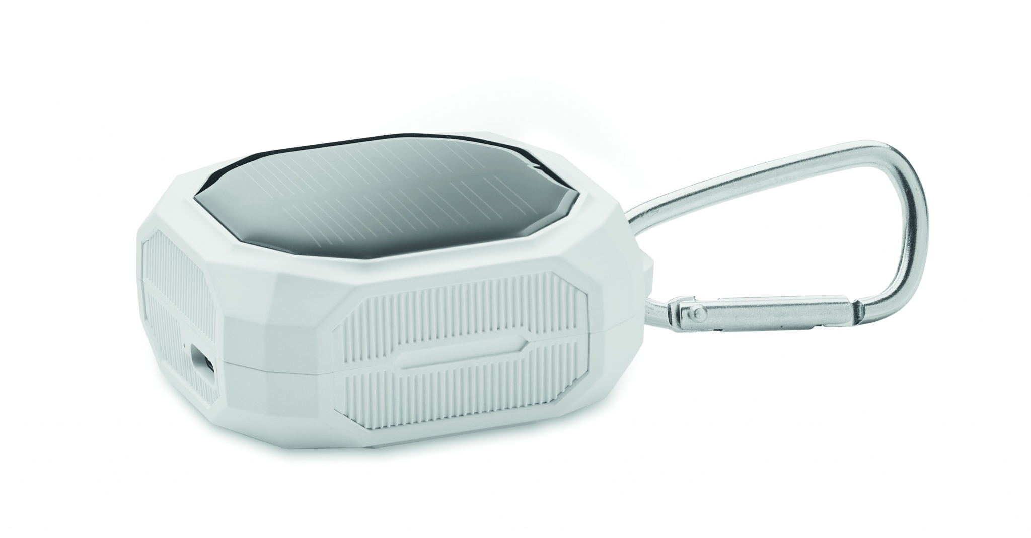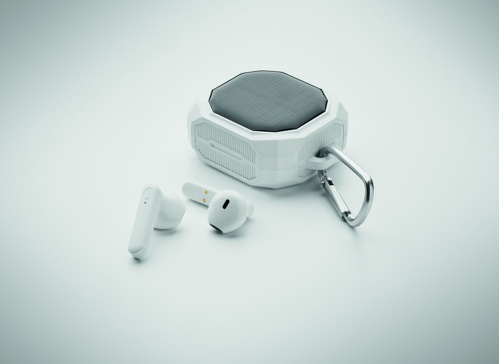 Беспроводные пластиковые наушники (TWS) 5.3 с микрофоном и аккумулятором емкостью 30 мАч. Время воспроизведения около 4 часов. Зарядка аккумулятора от солнечной энергии. Автоматическое сопряжение. В комплект входит кабель для зарядки Type C и зарядная станция емкостью 200 мАч.