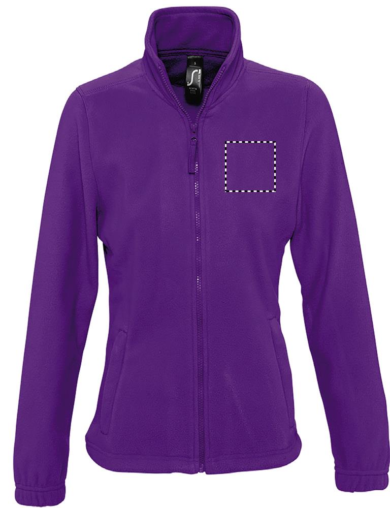 SOL'S NORTH women's fleece sweater in anti-pilling material, reinforced neck seam, high-lined collar, 2 zipped pockets, elasticated cuffs, crescent at the back, elastic drawstring at the hem. Fabric detail: 300g/m² fleece 100% polyester. OEKO-TEX. Only sold with print