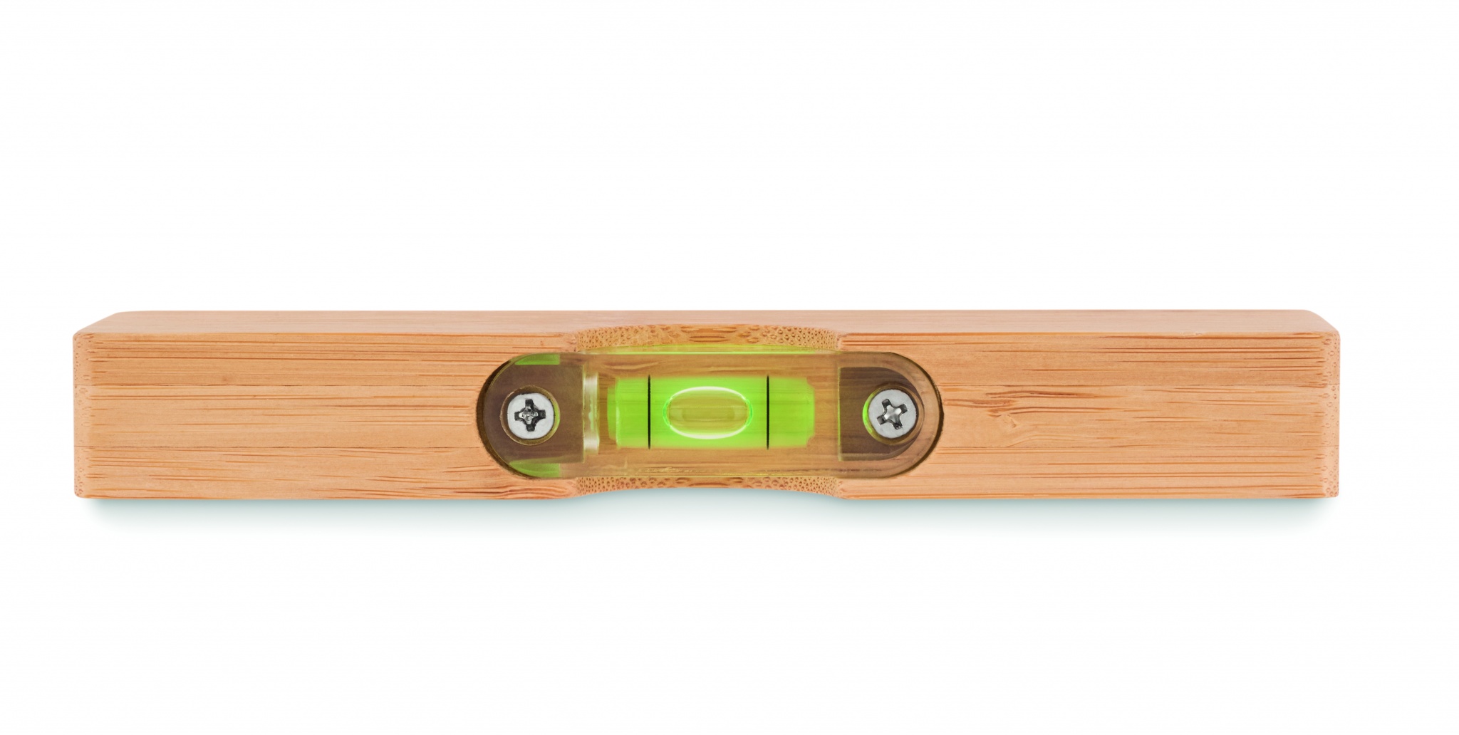 Уровень со встроенной открывалкой для бутылок в бамбуковом корпусе.