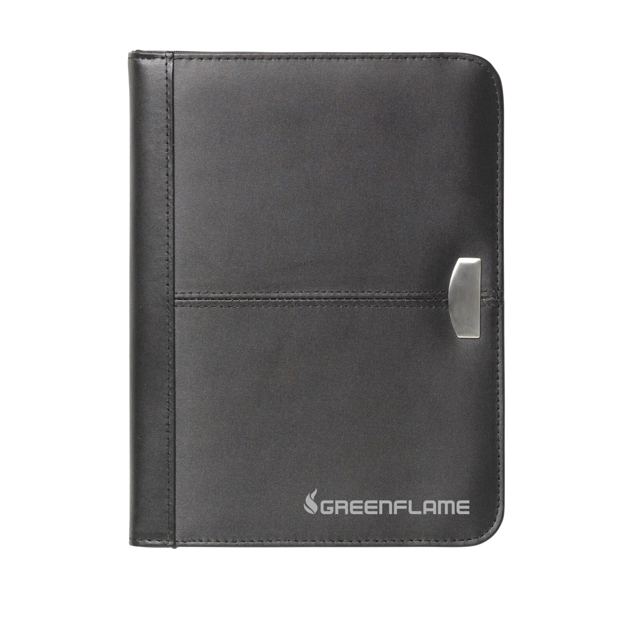 Папка для конференций/документов из высококачественной скрепленной кожи формата А5. С набором карманов и застежкой-молнией. Включает блокнот и шариковую ручку. Каждый предмет в индивидуальной коробке.
