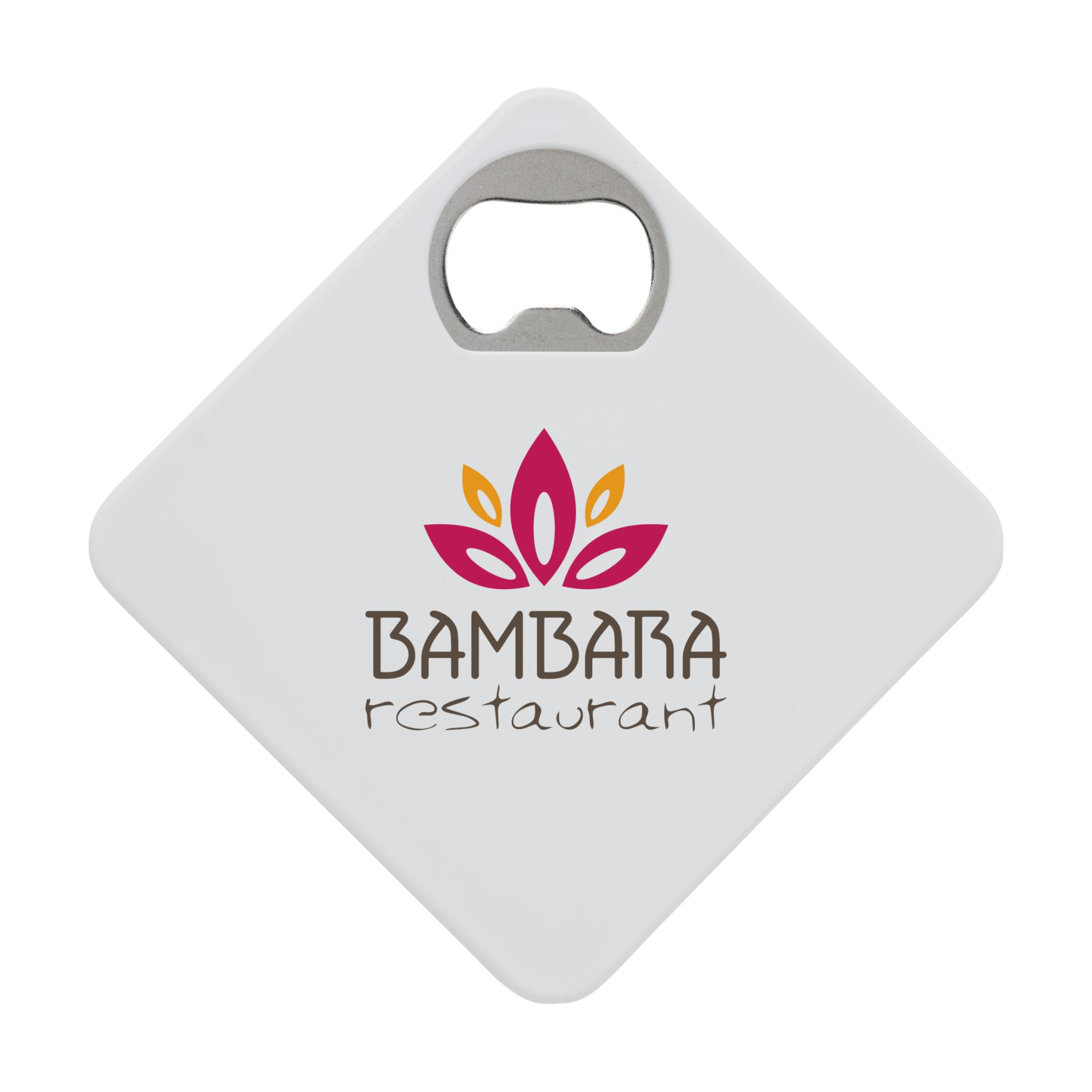 Подстаканник и металлическая открывалка в одном. С нескользящей основой. Можно напечатать собственную фотографию, логотип или собственный дизайн в полном цвете. Очень подходит для отправки в качестве почтового подарка.