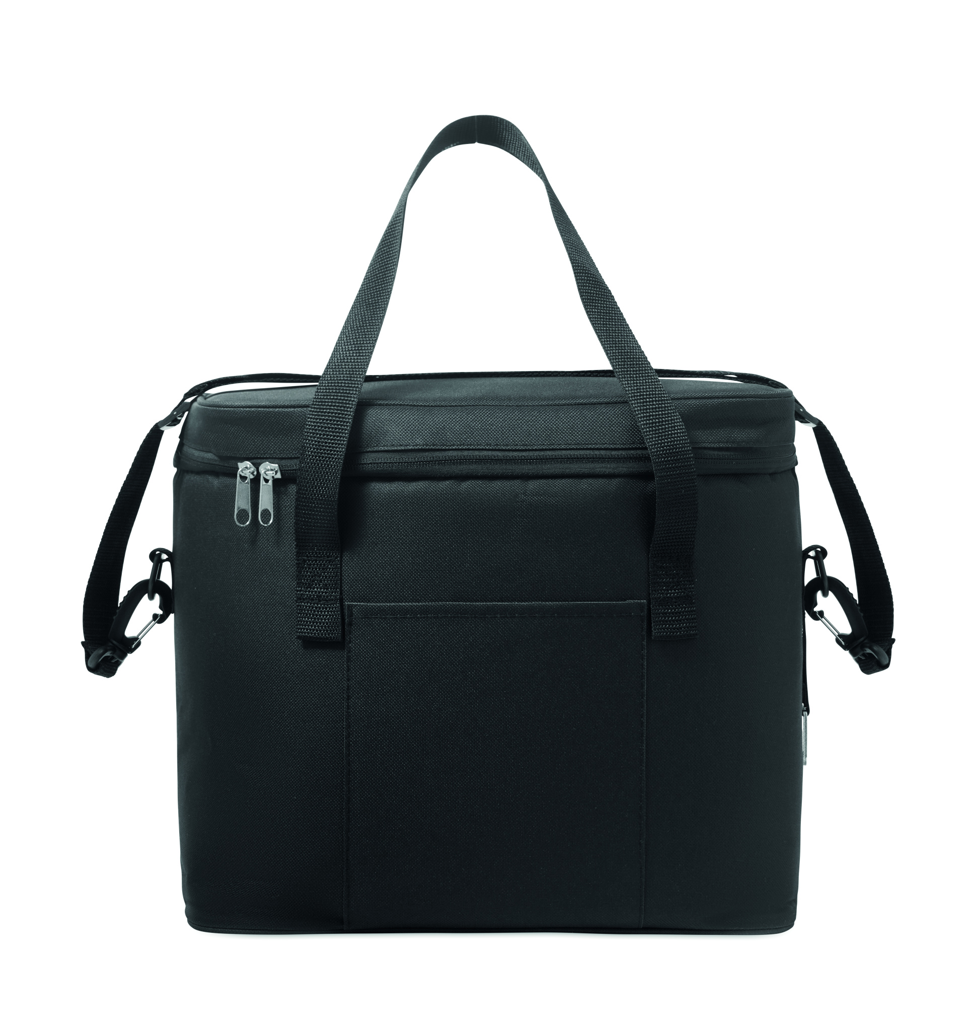 Cooler bag in 600D RPET polyester with PU coating. With 1 front pocket and 1 inner mesh pocket. Isolation PEVA lining with 6mm PE foam. Includes 2 handles and 1 adjustable shoulder strap. Capacity 18L