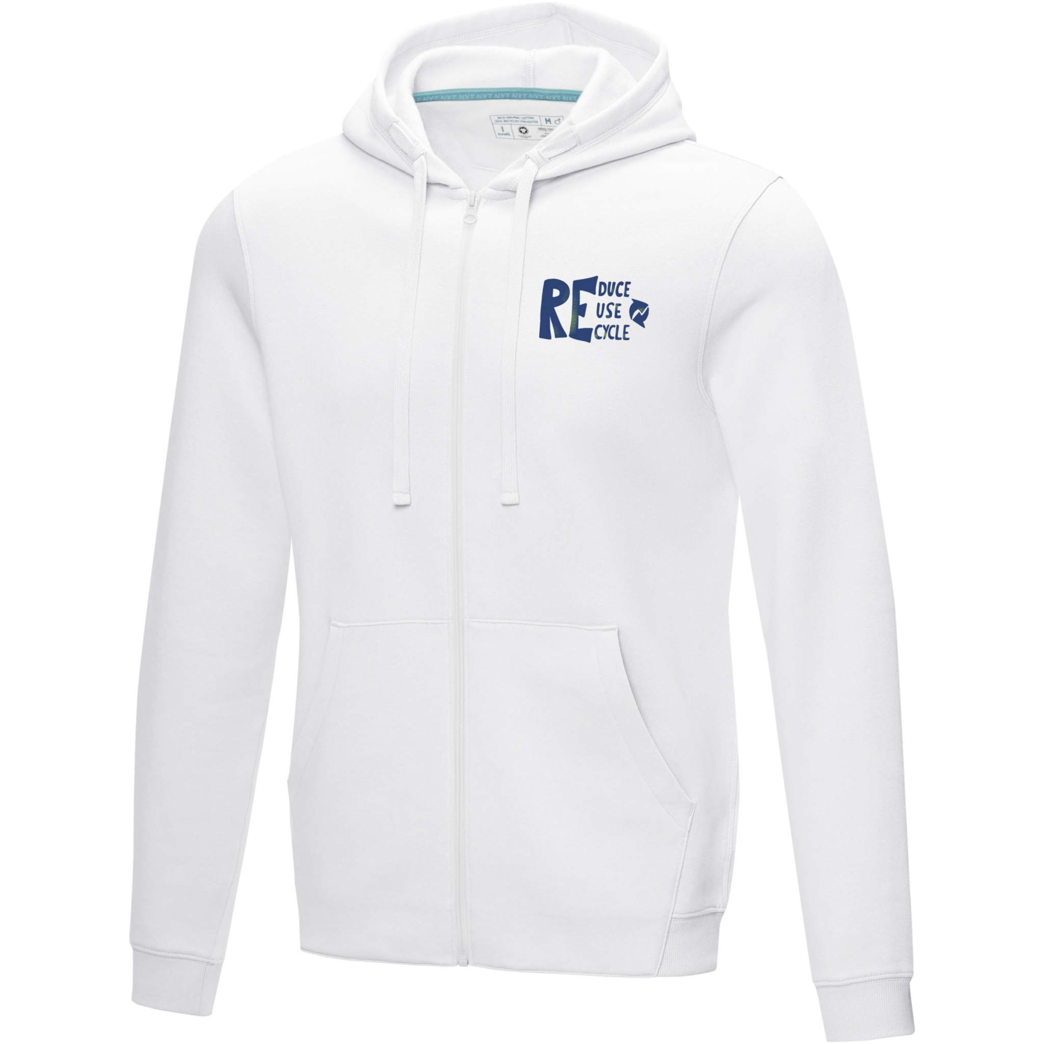 Ruby men’s organic recycled full zip hoodie, Белый
