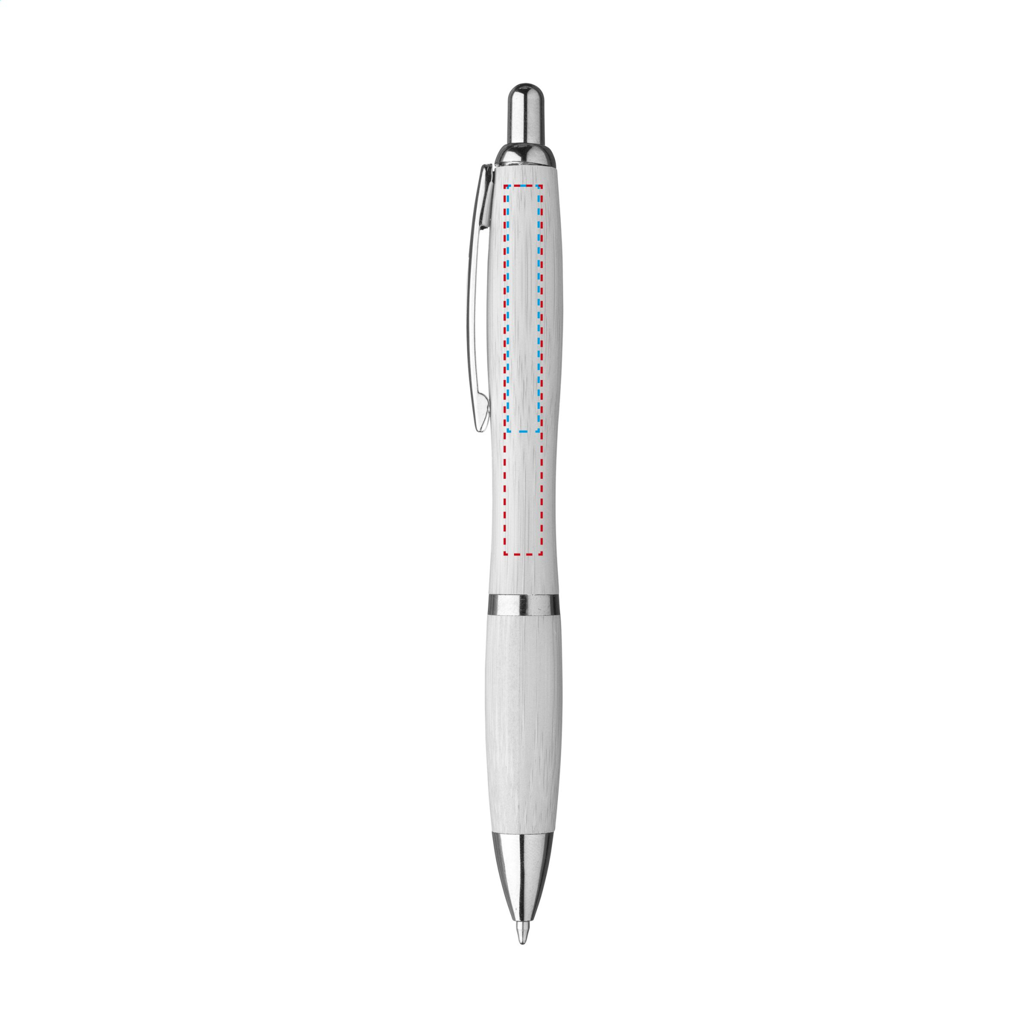 WoW! Шариковая ручка из бамбука с синими чернилами, металлическим зажимом и серебристыми акцентами.