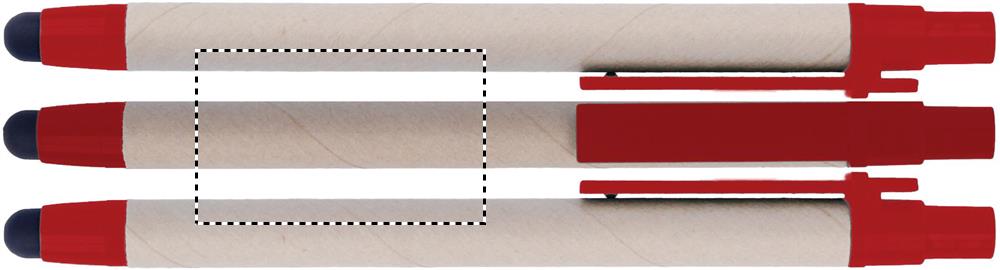 Шариковая ручка стилус автомат , изготовленная из переработанного картона и кончика и клипсы из ABS . Синие чернила.