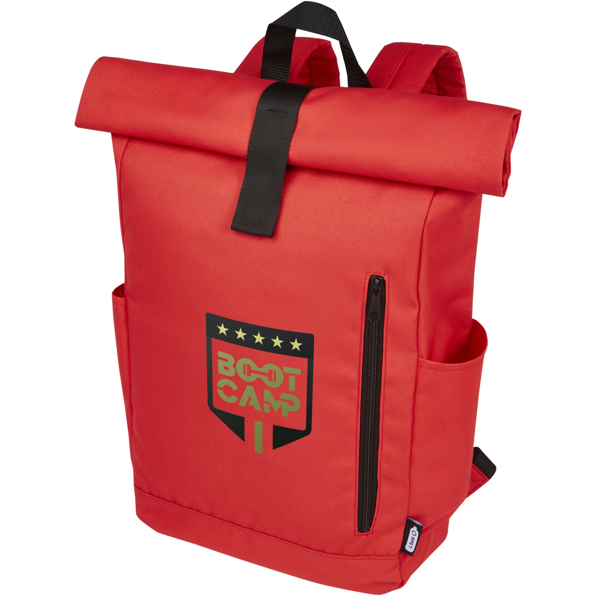 Лого трейд бизнес-подарки фото: Рюкзак Byron 15,6" объемом 18 л со скручиваемым верхом, изготовленный из переработанного ПЭТ по стандарту GRS