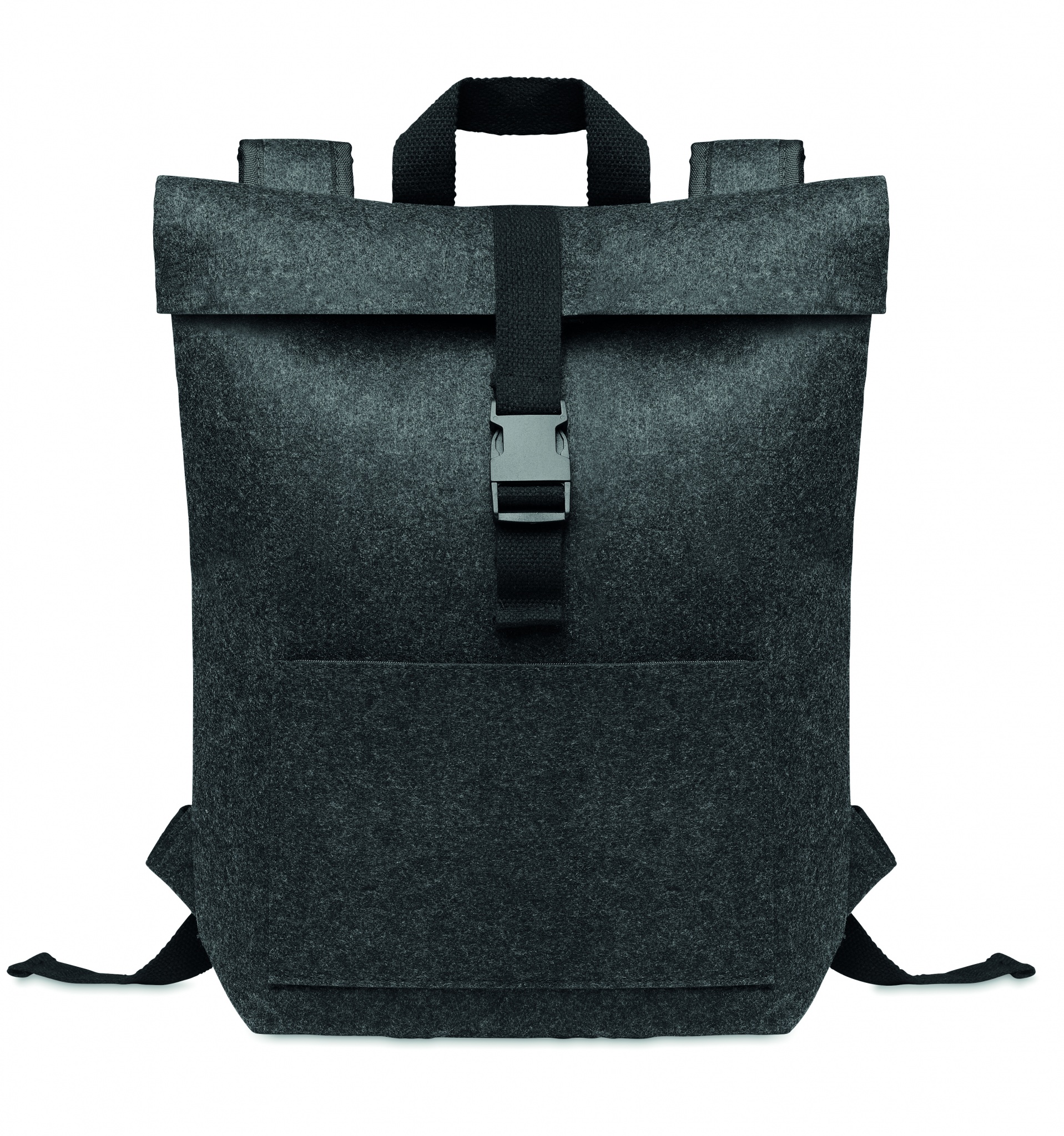 Рюкзак из переработанного войлока RPET с хлопковым ремешком и карманом на молнии спереди. Имеет отделение для ноутбука.