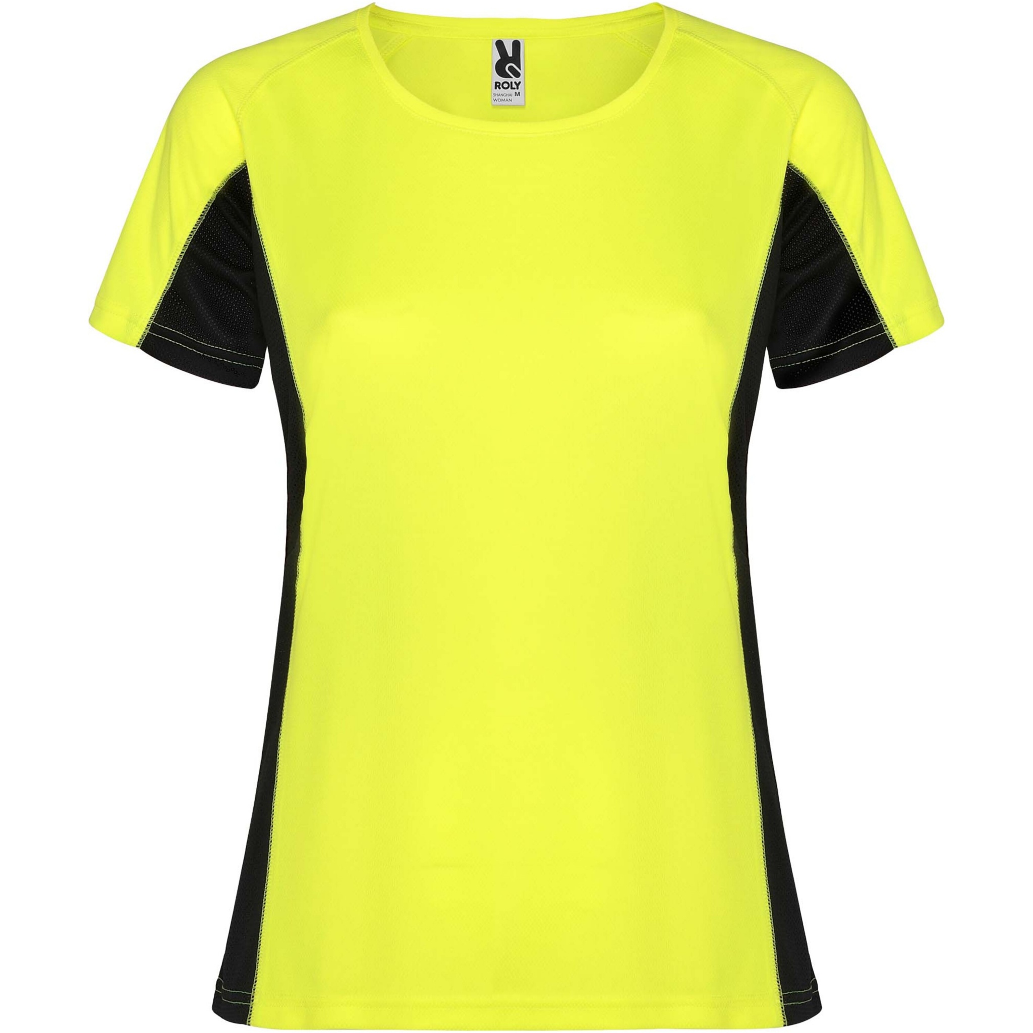 Shanghai женская спортивная футболка с коротким рукавом, Флуоресцентный желтый / Насыщенный черный