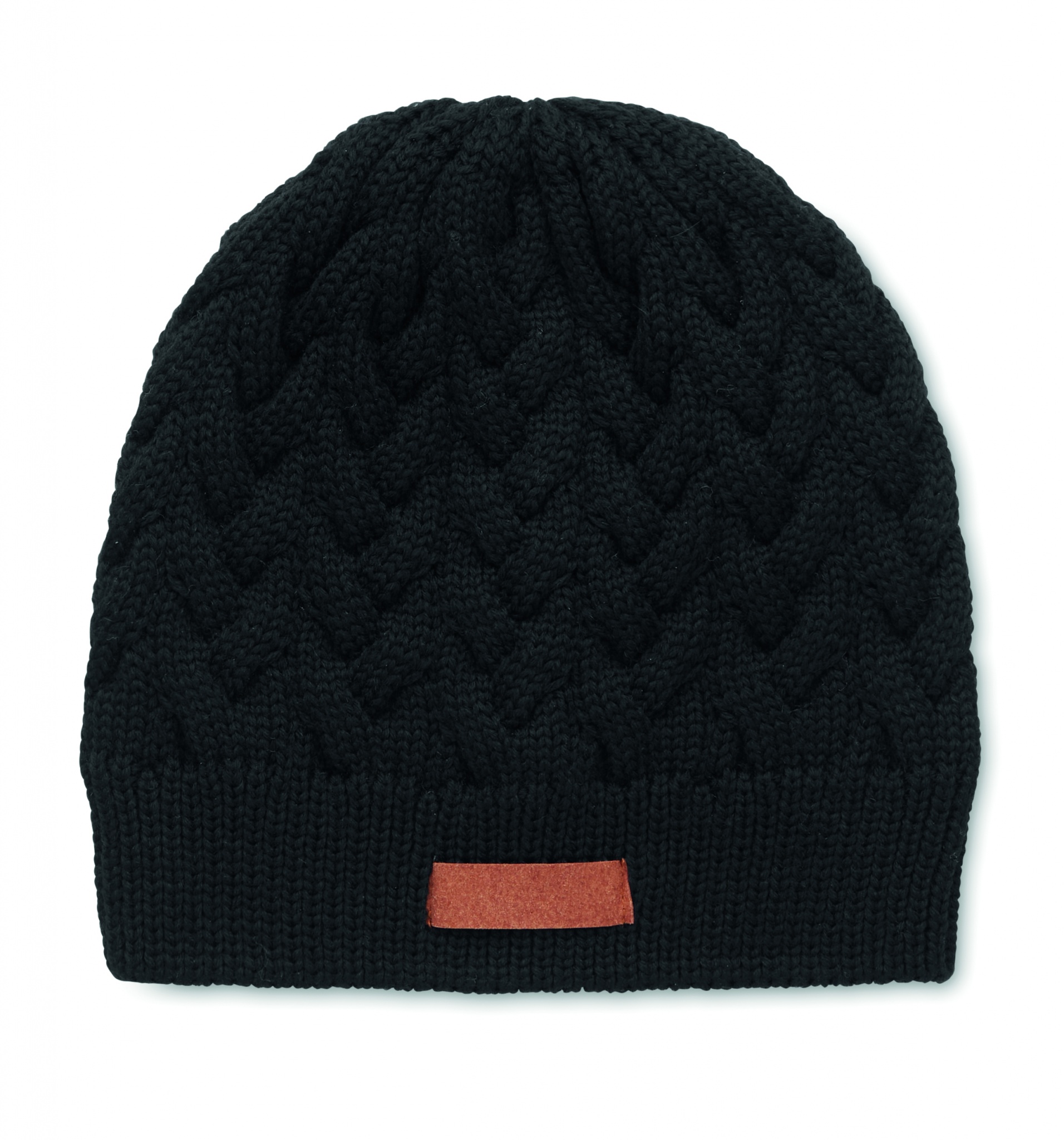Вязаная шапочка из переработанного материала с нашивкой для нанесения.