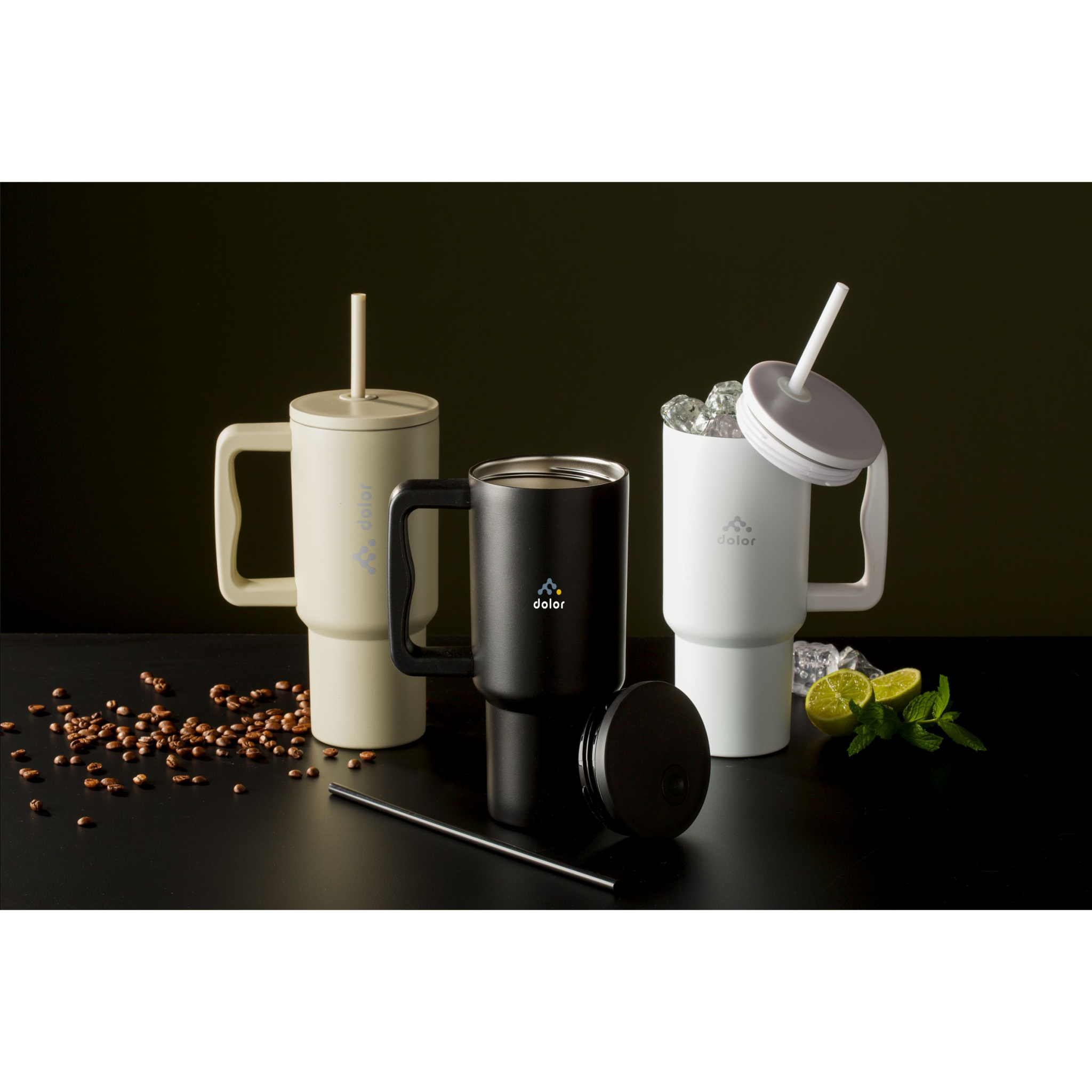 WoW! Большая, двухстенная кружка для питья из переработанной нержавеющей стали с трубочкой. Яркая, прочная кружка имеет большую пластиковую ручку и завинчивающуюся крышку с отверстием для прилагаемой пластиковой трубочки. Эта огромная кружка сохраняет температуру напитков в течение более длительного времени. Подходит для холодных и горячих напитков. Без трубочки температура не теряется благодаря силиконовому уплотнителю в крышке. Эту кружку можно брать с собой куда угодно. Идеально подходит для спортзала или офиса. Благодаря коническому узкому дну кружка помещается практически в любой подстаканник, что делает ее идеальной для использования в дороге. Не подходит для мытья в посудомоечной машине. Сертифицировано RCS. Общее количество переработанного материала: 75%. Емкость 900 мл. Каждый предмет поставляется в индивидуальной коричневой картонной коробке.