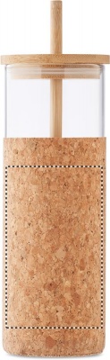 Стакан из боросиликатного стекла с пробковой защитной манжетой, бамбуковой крышкой и соломинкой. Емкость 450 мл. Поскольку стакан одностенный, теплопередача может происходить.