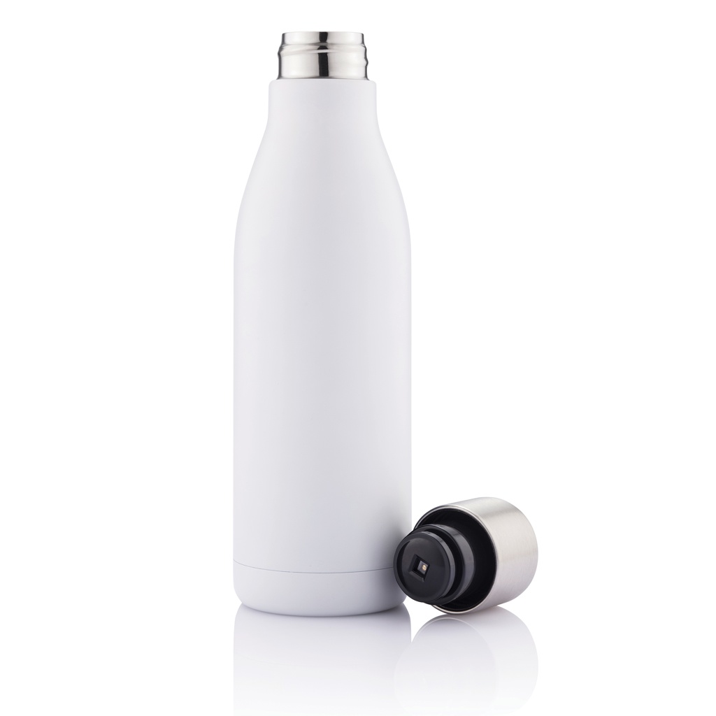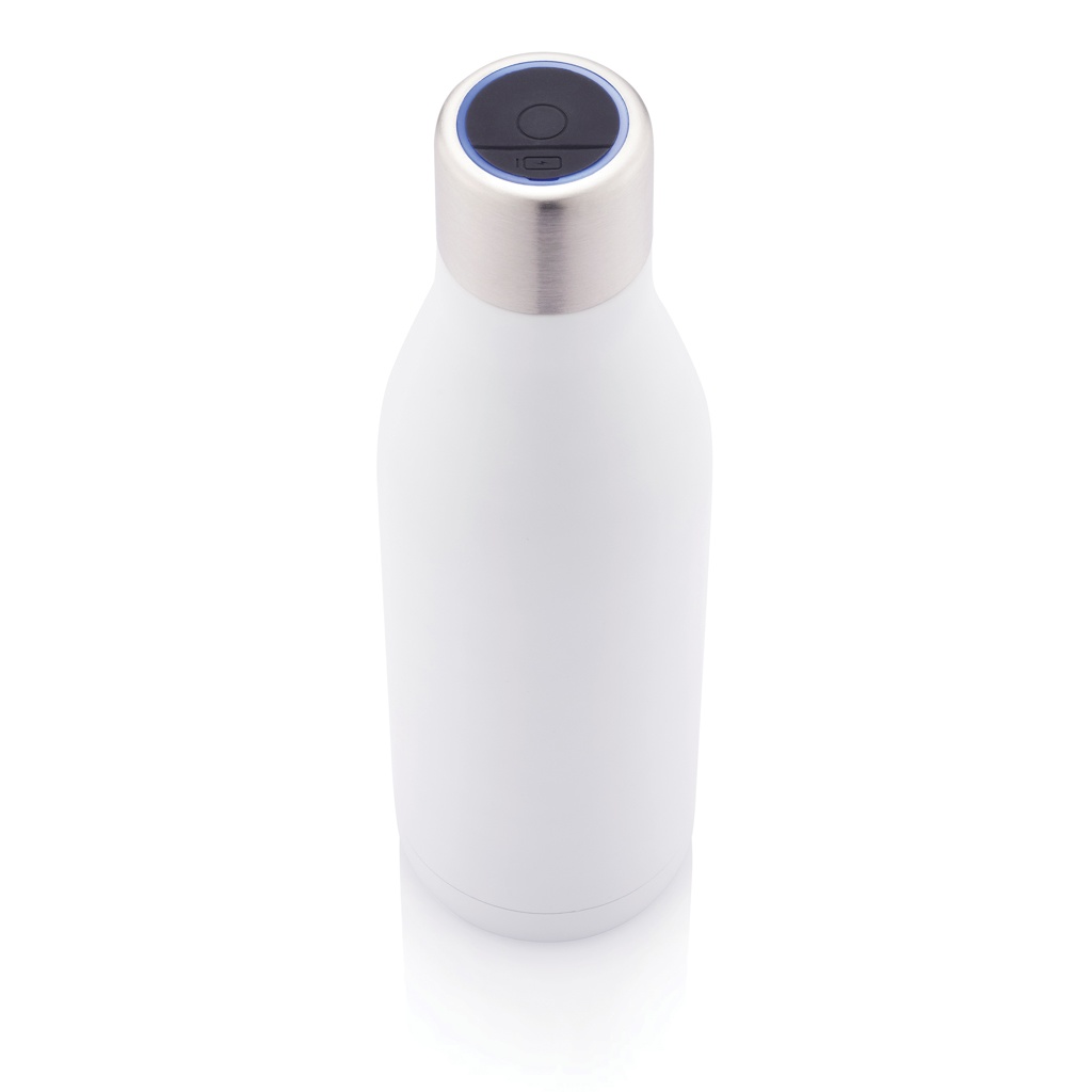 Эта вакуумная бутылка из нержавеющей стали с УФ-стерилизатором использует интеллектуальную технологию светодиодов УФ-С для очистки внутренних поверхностей бутылки, устраняя вызывающие запах бактерии и вирусы примерно за 5 минут. Красивый дизайн. Сохраняет воду холодной до 15 часов и горячей до 5 часов благодаря конструкции из нержавеющей стали с двойной стенкой и изоляцией. Поставляется с литий-полимерным аккумулятором емкостью 180 мАч с возможностью зарядки через USB, что позволяет стерилизовать бутылку до 14 раз при полной зарядке. Емкость 500 мл. Не содержит бисфенол-А.