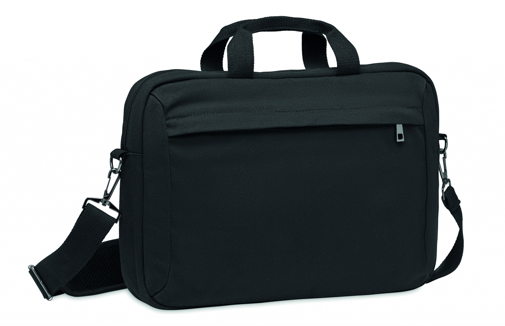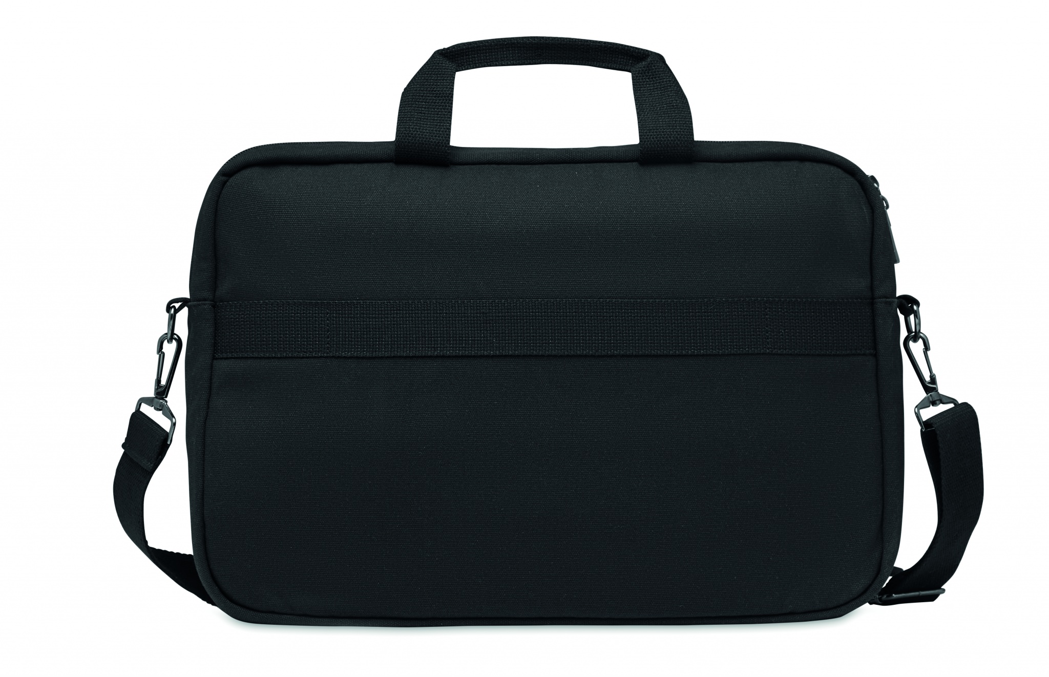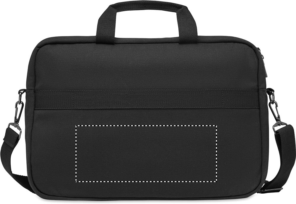 Компьютерная сумка из плотной парусины 340 гр/м². Съемный регулируемый плечевой ремень с мягкой подкладкой. Задний ремень для крепления на чемодане.