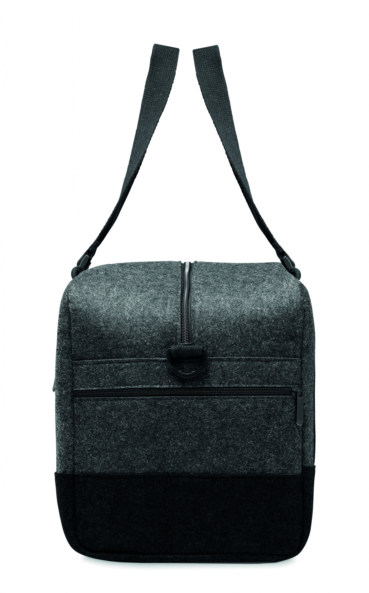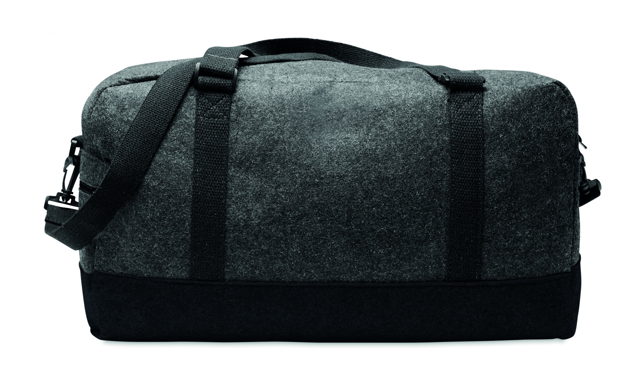 Сумка из переработанного фетра RPET, предназначеннная для спорта/фитнеса или для небольших поездок . Удобный передний карман на молнии, холщовые ручки и съемный регулируемый плечевой ремень.