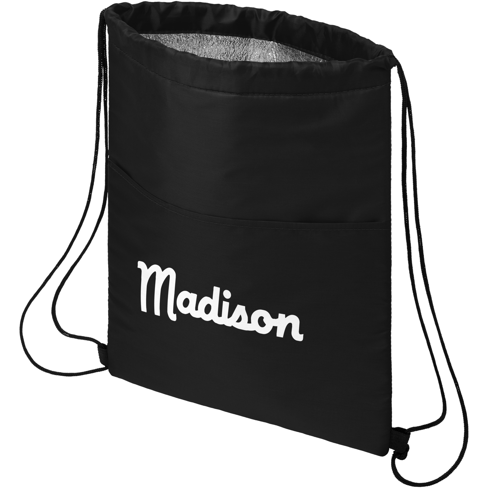 Сумка-холодильник затягивается на шнурок черного цвета. С открытым передним карманом. Вмещает 12 банок. Прочность до 5 кг.